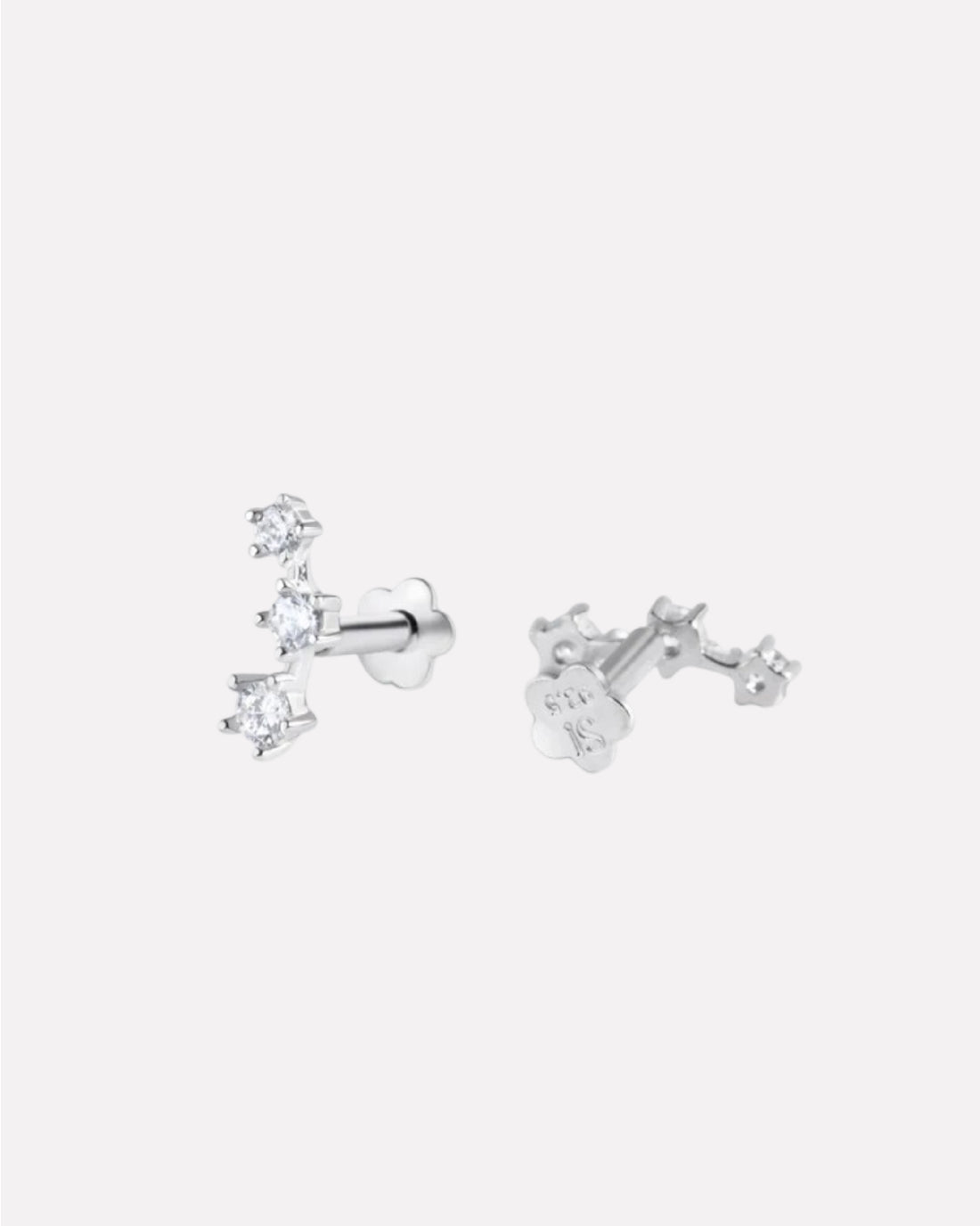 Tri Zirconia Flat Back Screw Stud Earrings in 92.5 sterling silver with 5A+ zirconia stones....