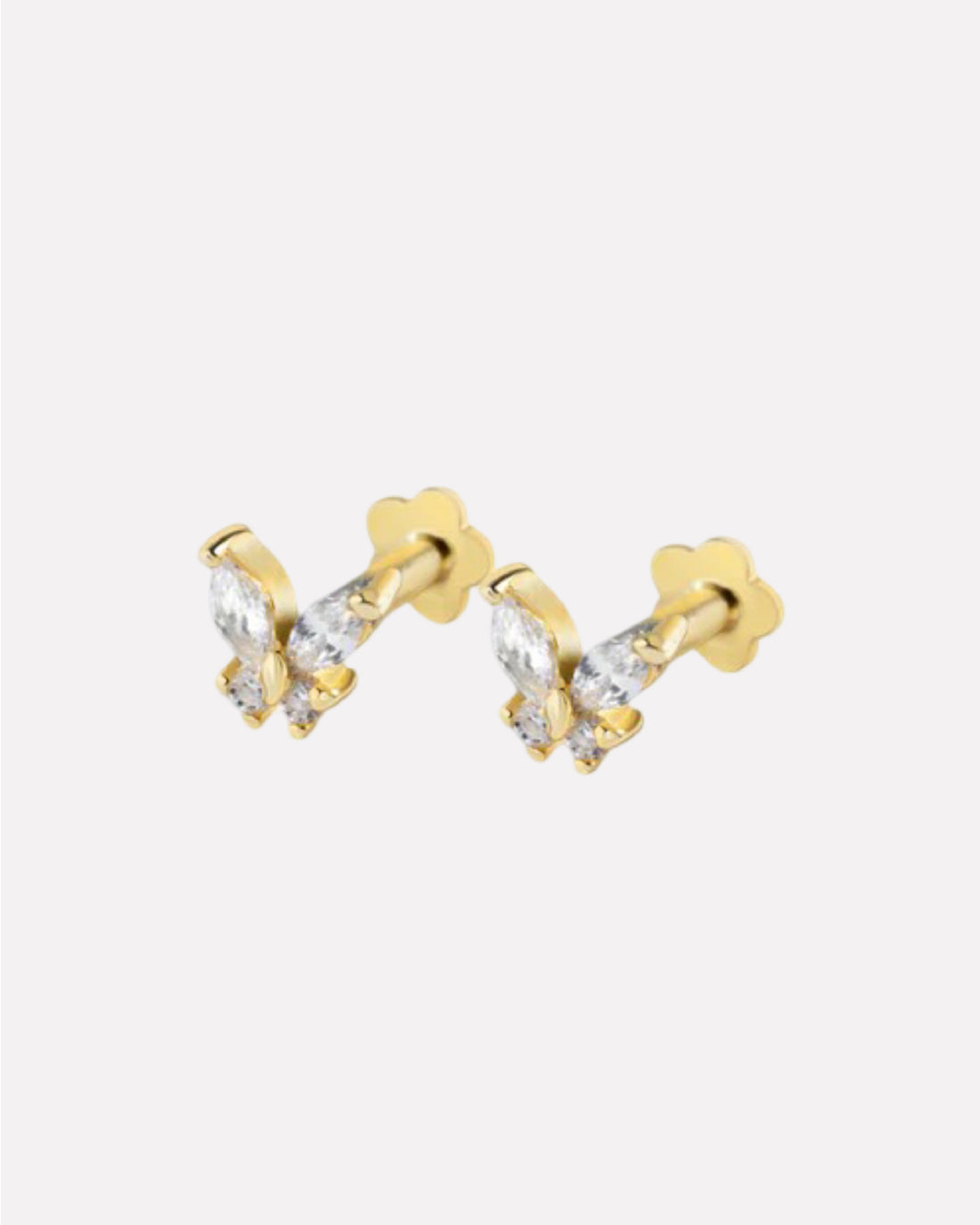 Radiant Butterfly Flat Back Screw Stud Earrings in 92.5 sterling silver with 5A+ zirconia stones....