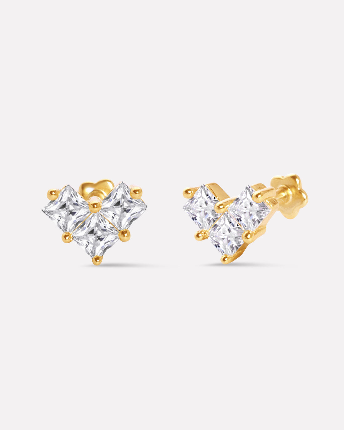 Ayra Flat Back Stud Earrings in 92.5 sterling silver with 5A+ zirconia stones, 14K gold...