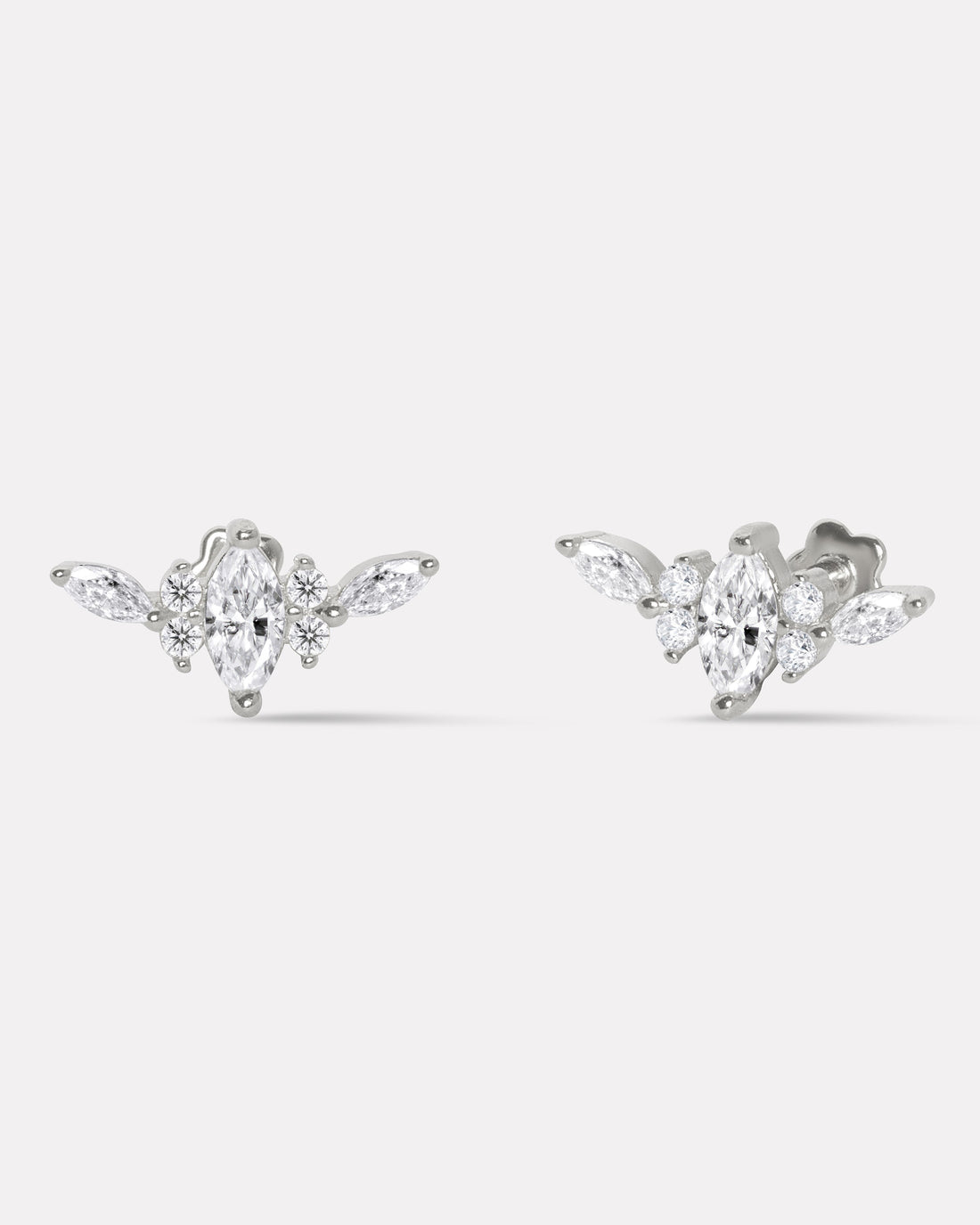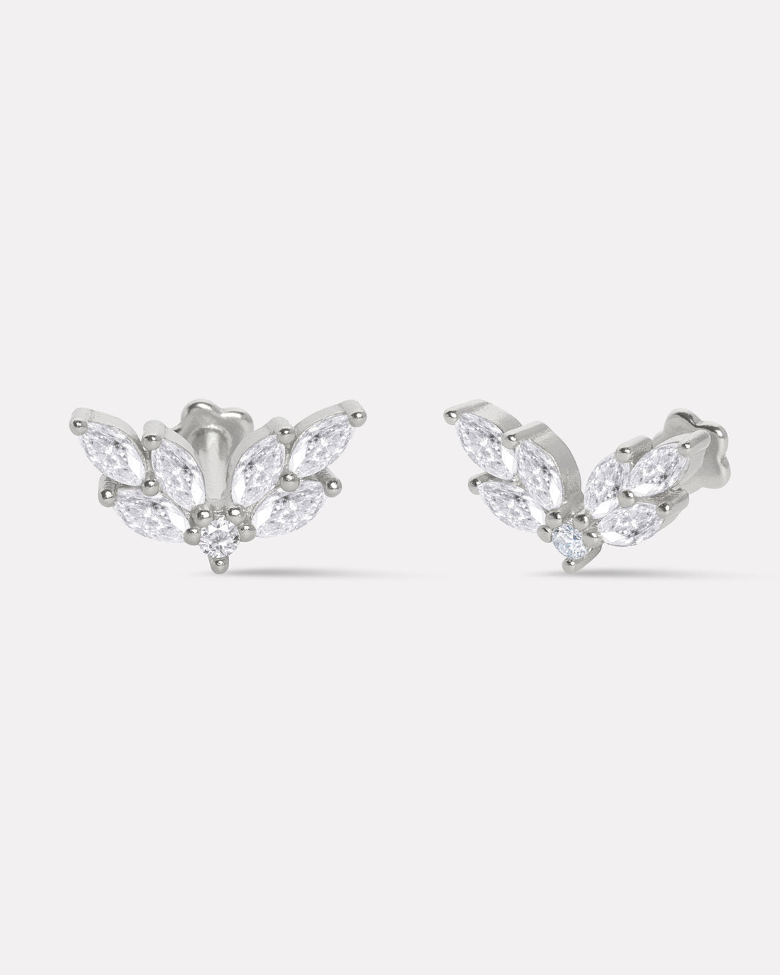 Quadra Bloom Flat Back Stud Earrings in 92.5 sterling silver with 5A+ zirconia stones, Rhodium...