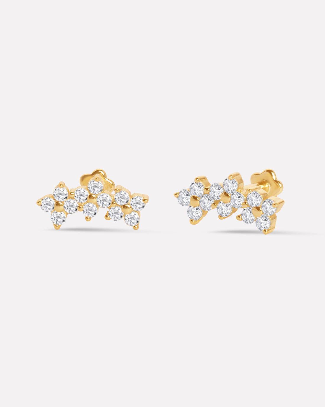Iris Flat Back Stud Earrings in 92.5 sterling silver with 5A+ zirconia stones, 14K gold...