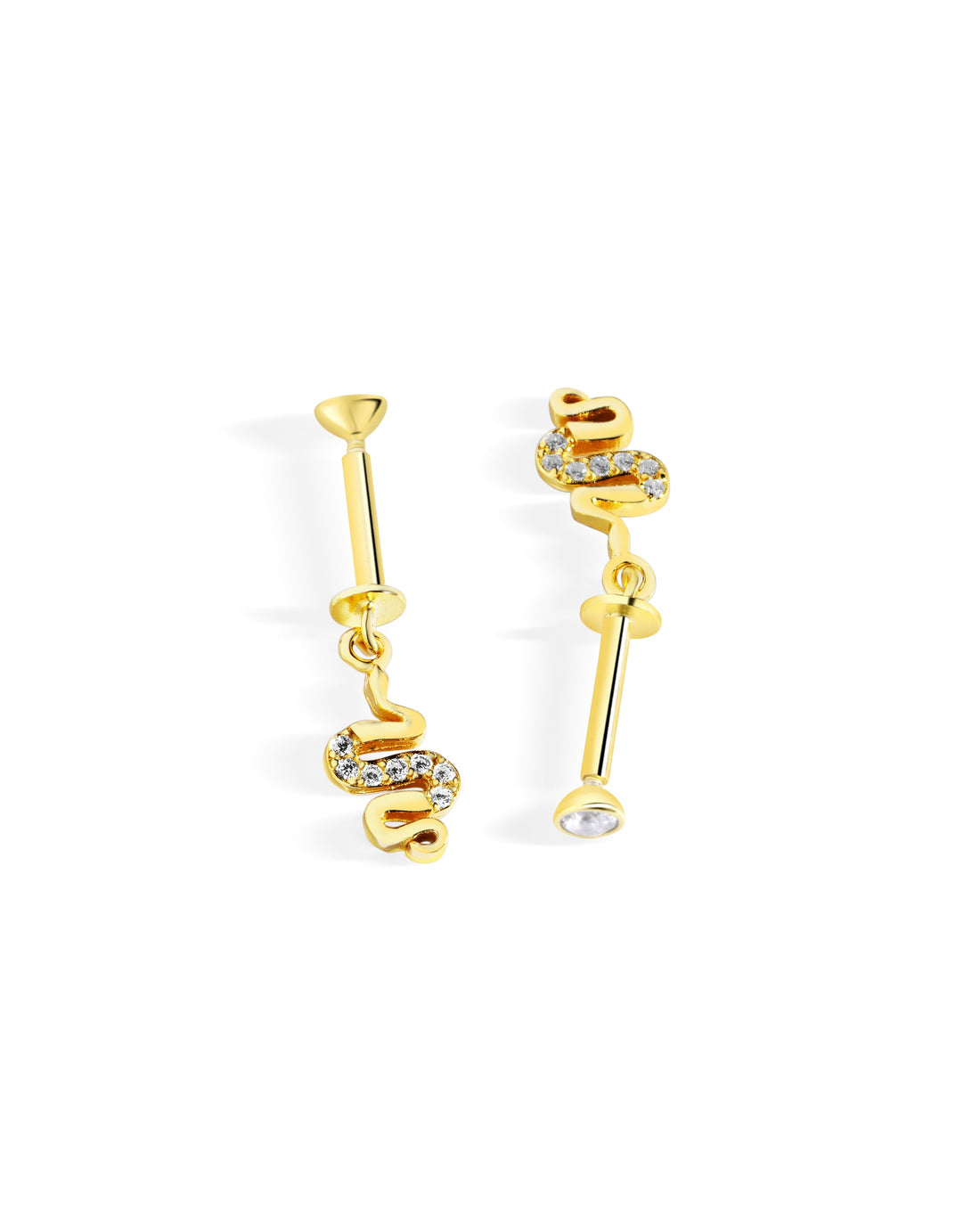 Exclusive Serpent Helix Hanging Earrings in 92.5 sterling silver, 14K gold plated with 5A+ zirconia...