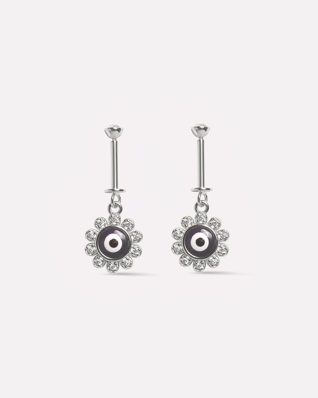Round Evil Eye Helix Hanging Earrings in 92.5 sterling silver with rhodium plating and 5A+...