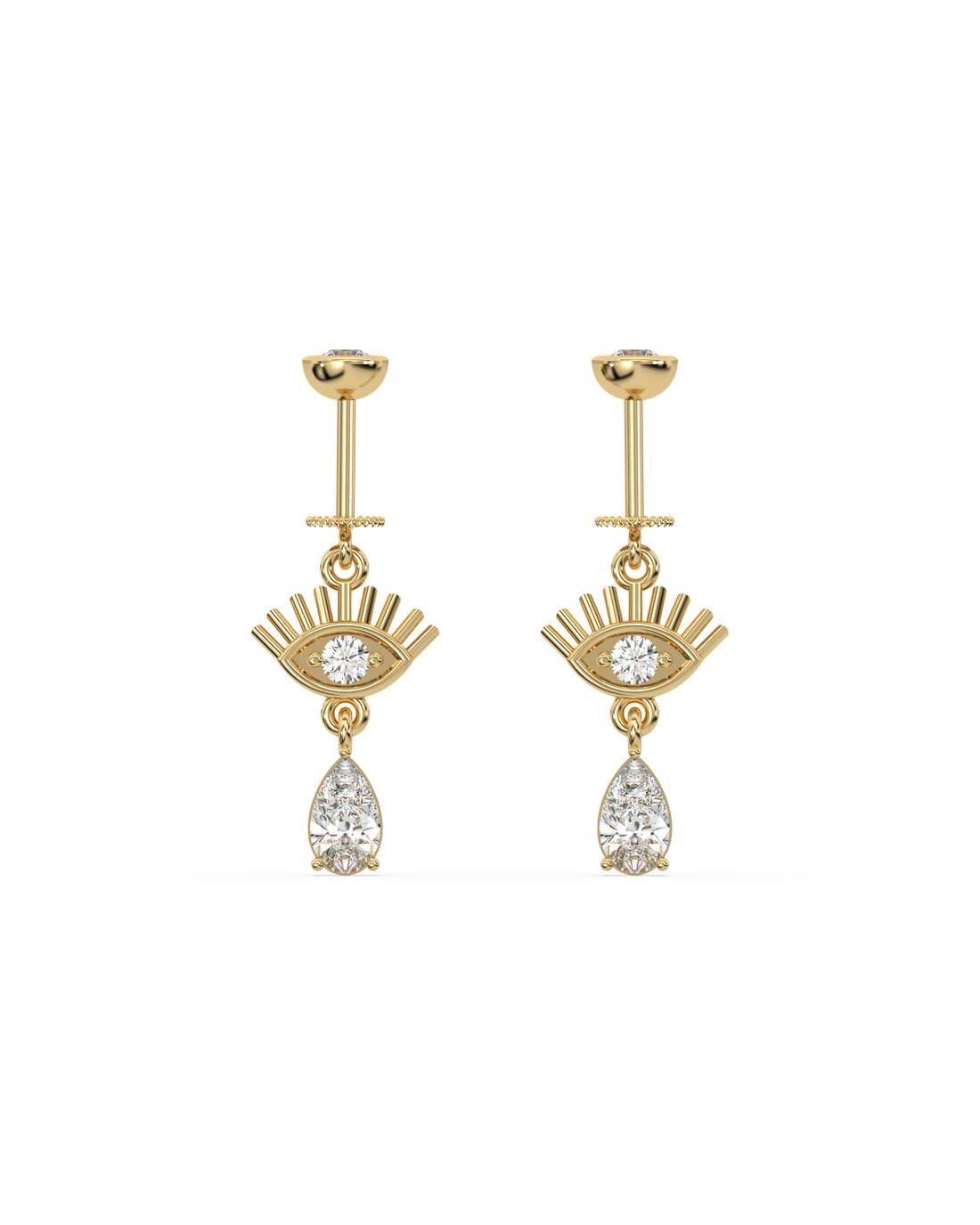 Eye With Droplet Helix Hanging Earrings in 92.5 sterling silver, 14K gold plated with 5A+...