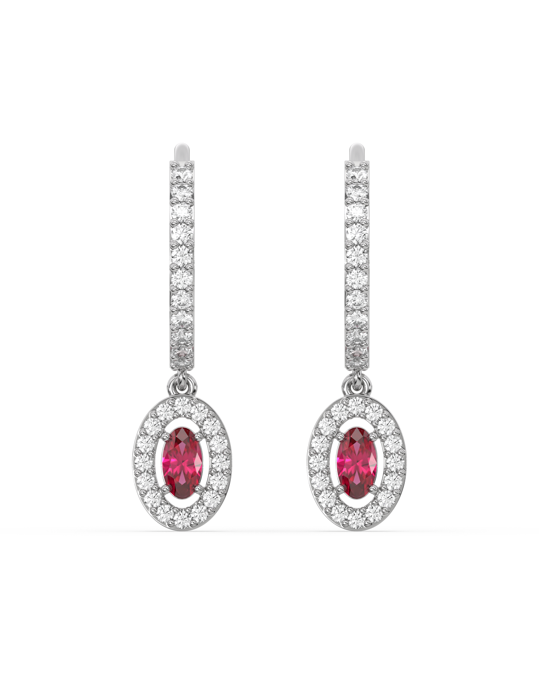 Chic Sphere Ruby Charm hoops in 92.5 silver, rhodium plated with 5A+ zirconia stones. The...