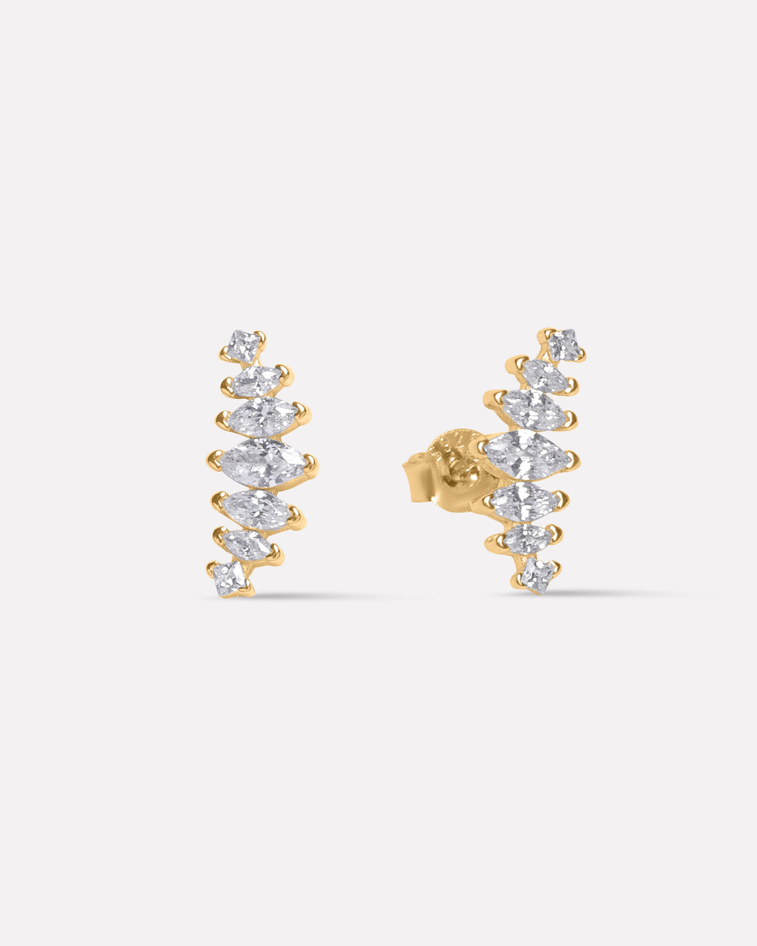 Seven Climber Stone Stud Earrings in 92.5 silver with 14K gold plating and 5A+ zirconia...