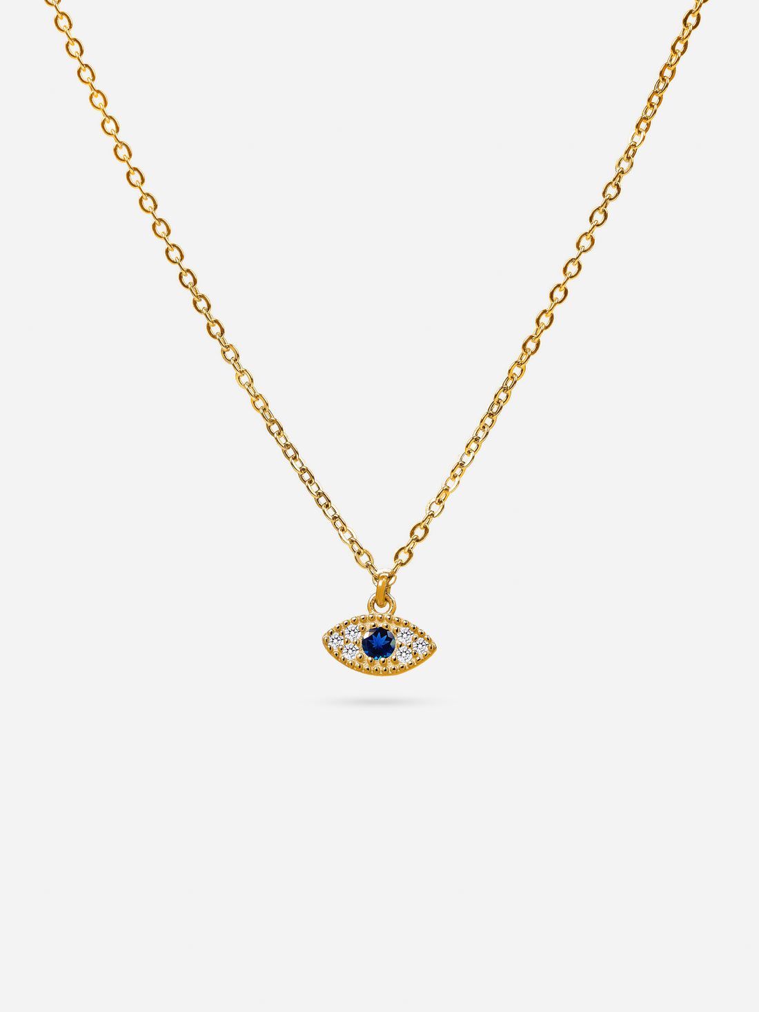 Dainty Evil Eye Charm Necklace in 92.5 sterling silver with 5A+ zirconia stones. Rhodium plated...