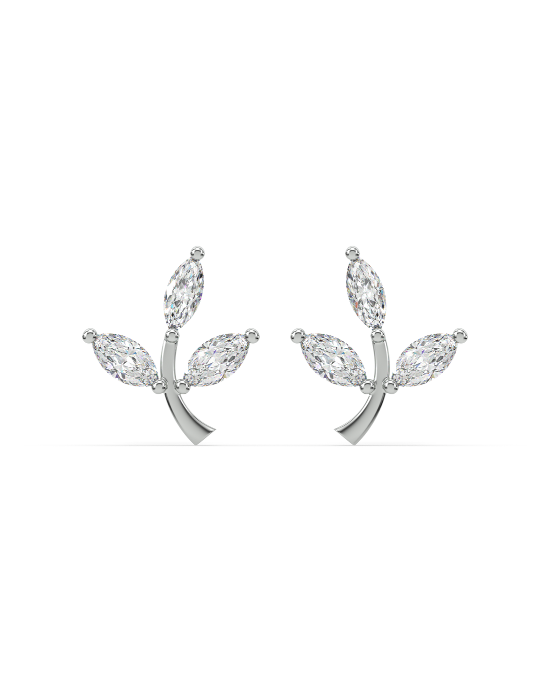 Marqa Leaf Stud Earrings in 92.5 silver with rhodium plating and 5A+ zirconia stones. A...