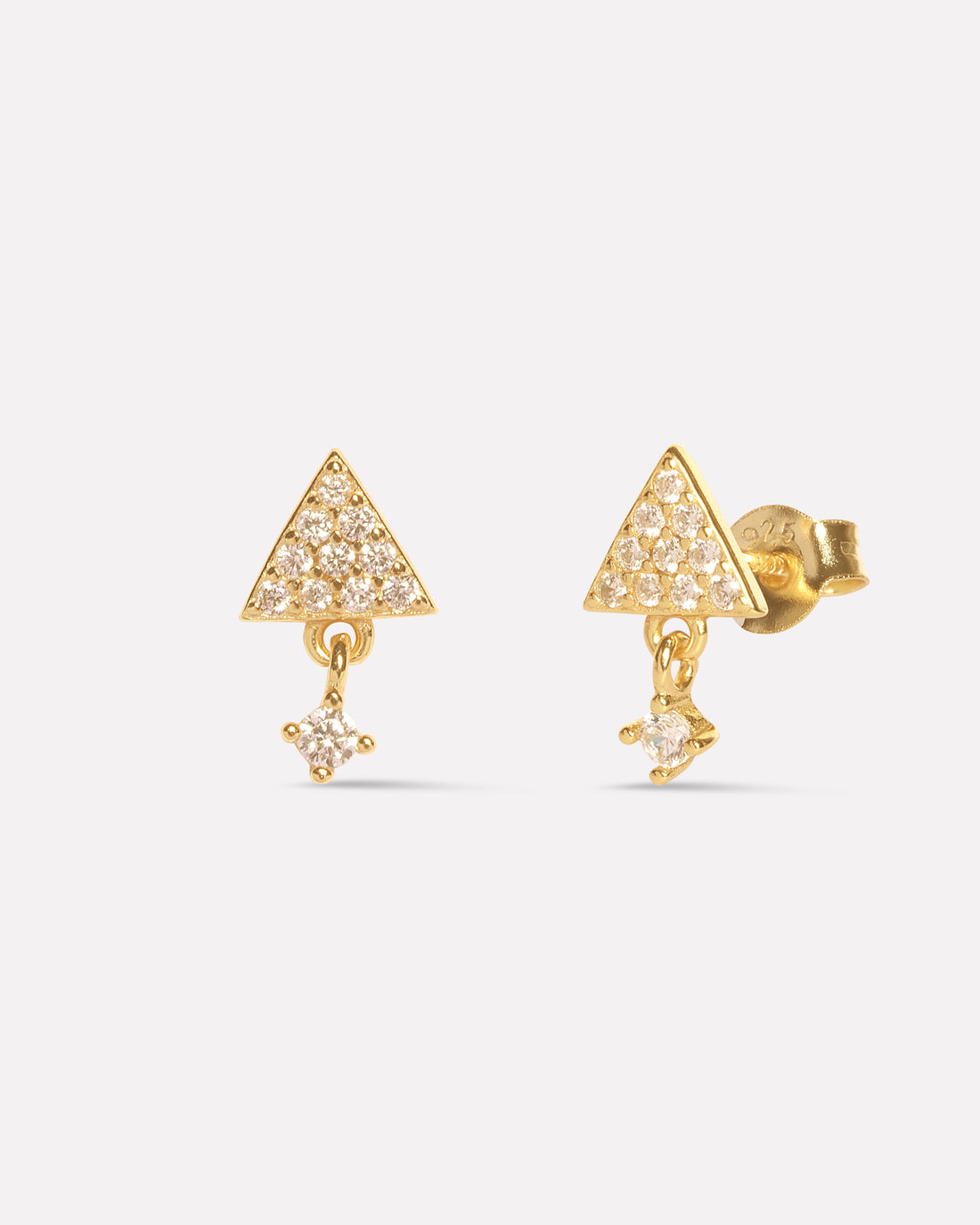 Pyramid Drop Stud Earrings in 92.5 silver with 14K gold plating and 5A+ zirconia stones....