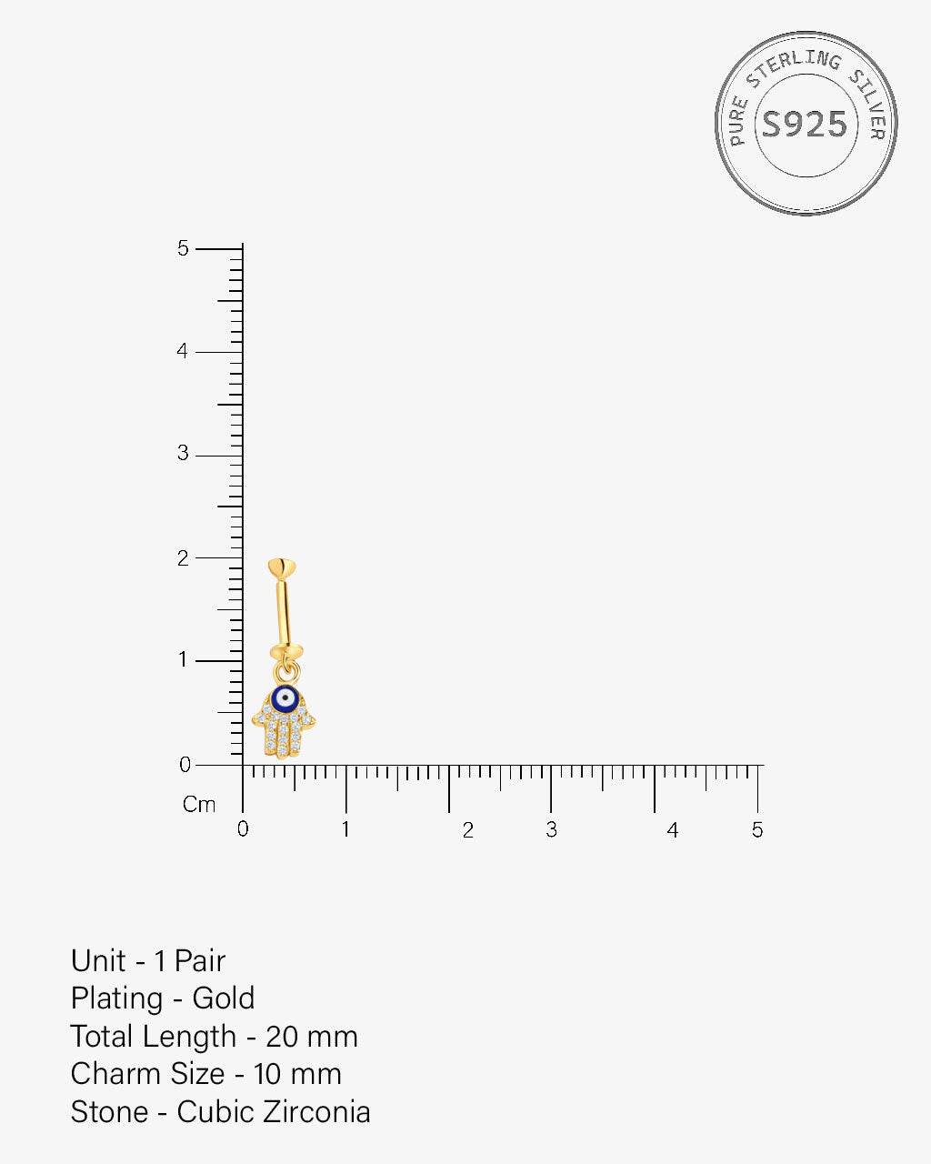 Hamsa Hand Helix Hanging Earrings in 92.5 sterling silver with 14K gold plating and 5A+ zirconia stones. Featuring the iconic Hamsa design, these earrings bring protection, charm, and sparkle to helix piercings, perfect for layering, gifting, or making a meaningful style statement.