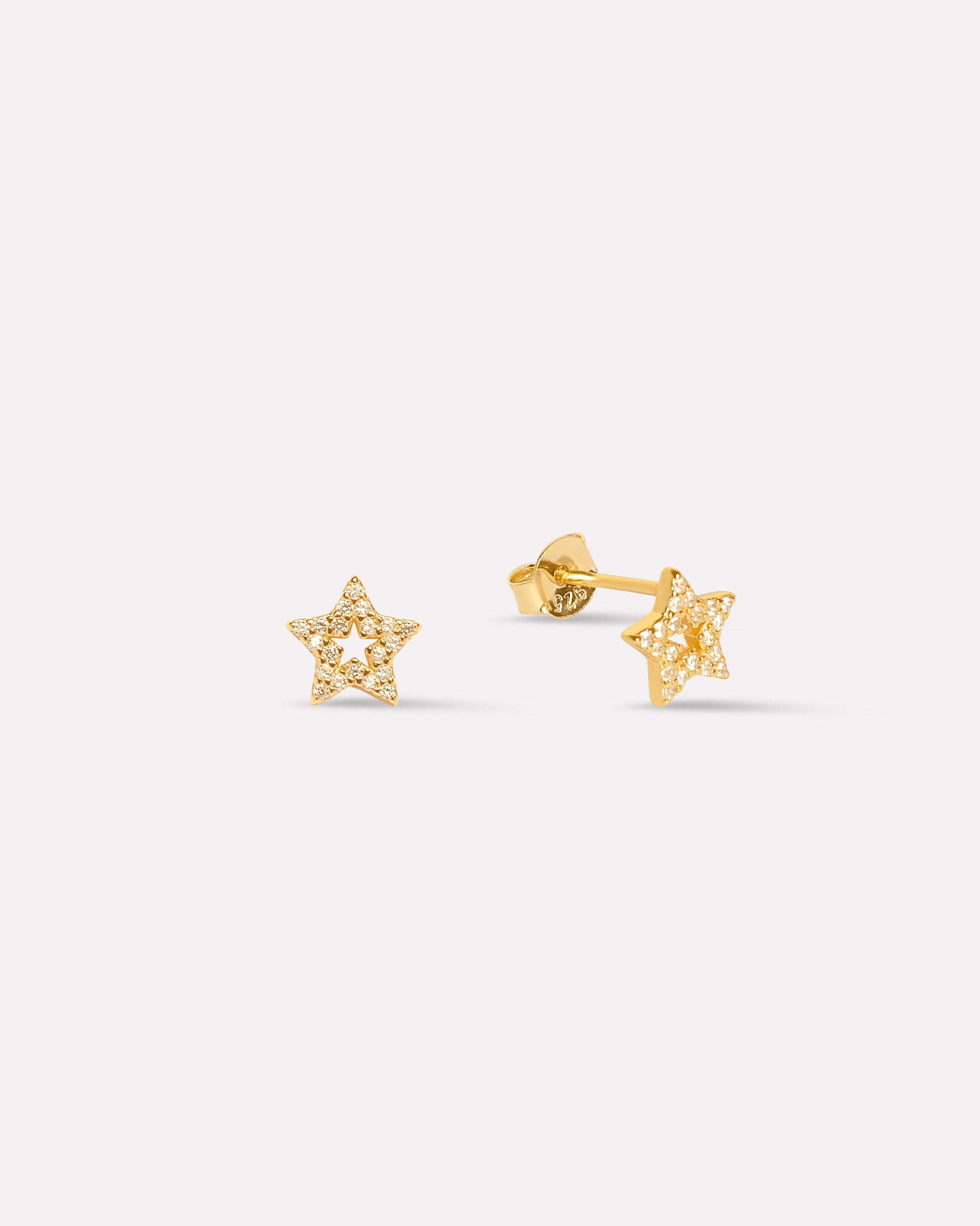 Elegant Pavé Hollow Star Stud Earrings crafted in 92.5 silver with 14K gold plating and 5A+ zirconia stones. A sparkling star silhouette symbolizing radiance, perfect for cosmic-inspired jewelry lovers.