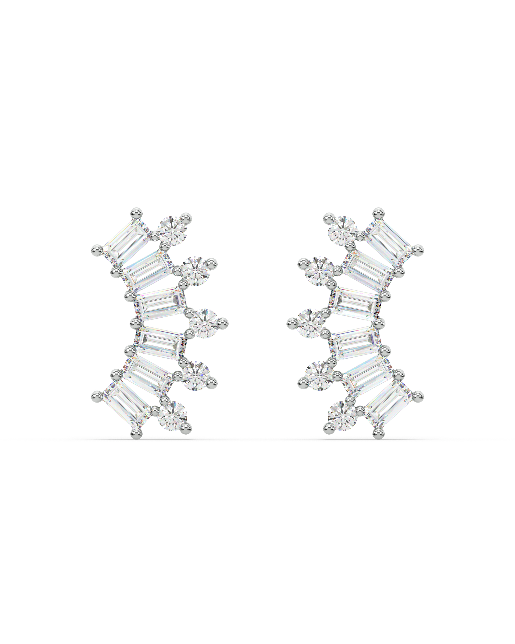 Shine daily with Everyday Baguette Climber Stud Earrings crafted in 92.5 silver, featuring sparkling 5A+ zirconia stones and rhodium plating. A chic climber design adds modern elegance to your jewelry collection.
