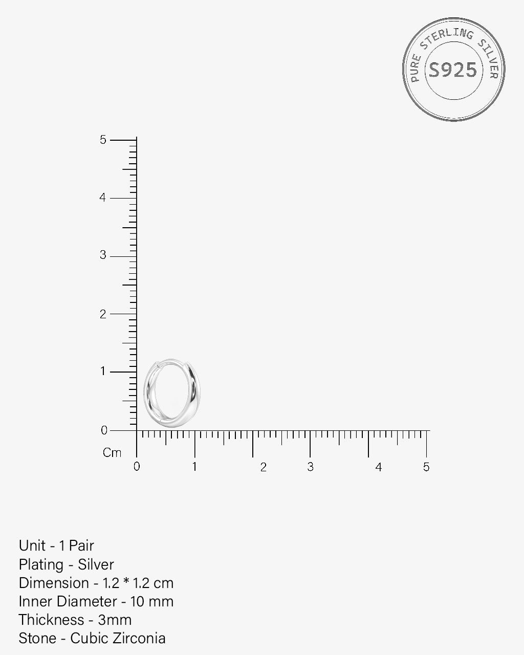 Bold Chunky Thick hoops in 92.5 silver, rhodium plated with sparkling 5A+ zirconia stones. The thick design delivers a modern statement with radiant shimmer, perfect for wearing alone or stacking to add a contemporary edge to any outfit.