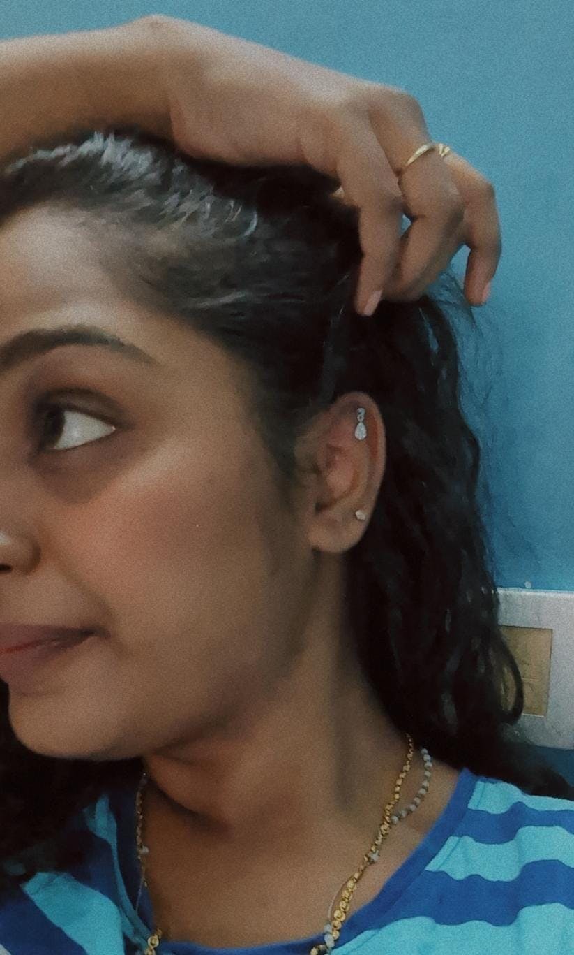 Cubic Zirconia Drop Screw Helix Hanging Earrings in 92.5 sterling silver with rhodium plating, adorned with 5A+ zirconia stones. The elegant drop design adds subtle sparkle to helix piercings, ideal for layering, everyday wear, or gifting a timeless, chic accessory.