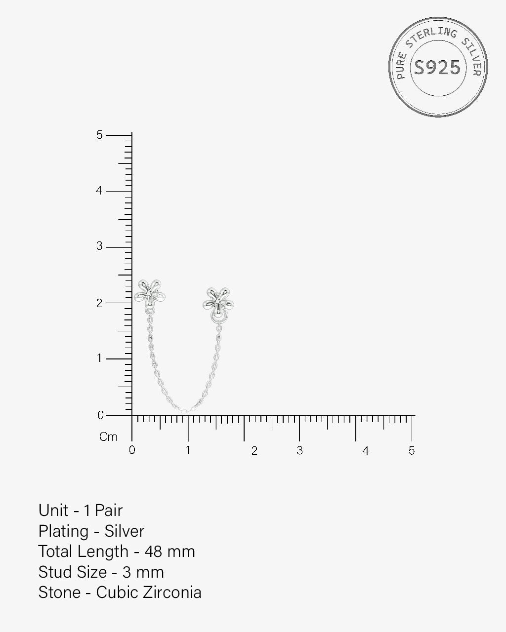 Dainty Flower Connector 3-in-1 Chain Earrings in 92.5 sterling silver with 5A+ zirconia stones. Rhodium plated for lasting brilliance, these versatile earrings feature delicate floral charms and a layered chain design, perfect for everyday wear or gifting.