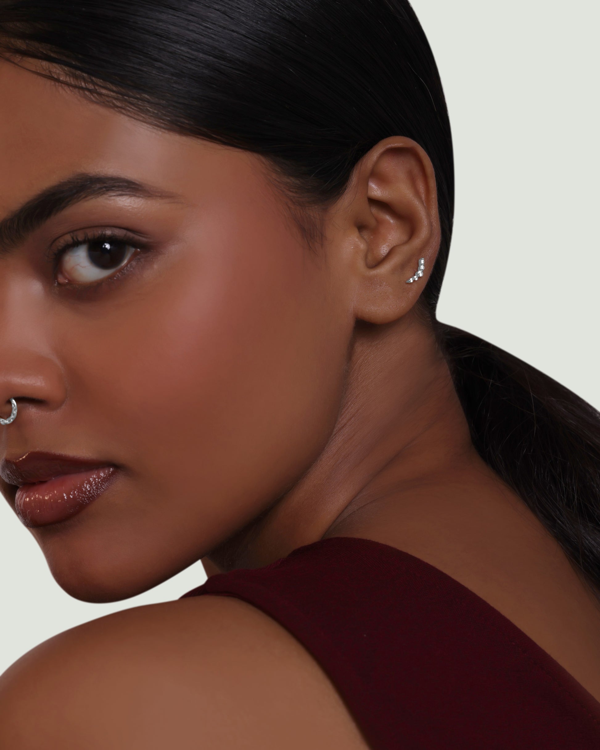 Five Mattel Stone Climber Screw Stud Earrings crafted in 92.5 silver with 5A+ zirconia stones and rhodium plating. A versatile climber style that sparkles with elegance, making it a chic choice for layering looks.