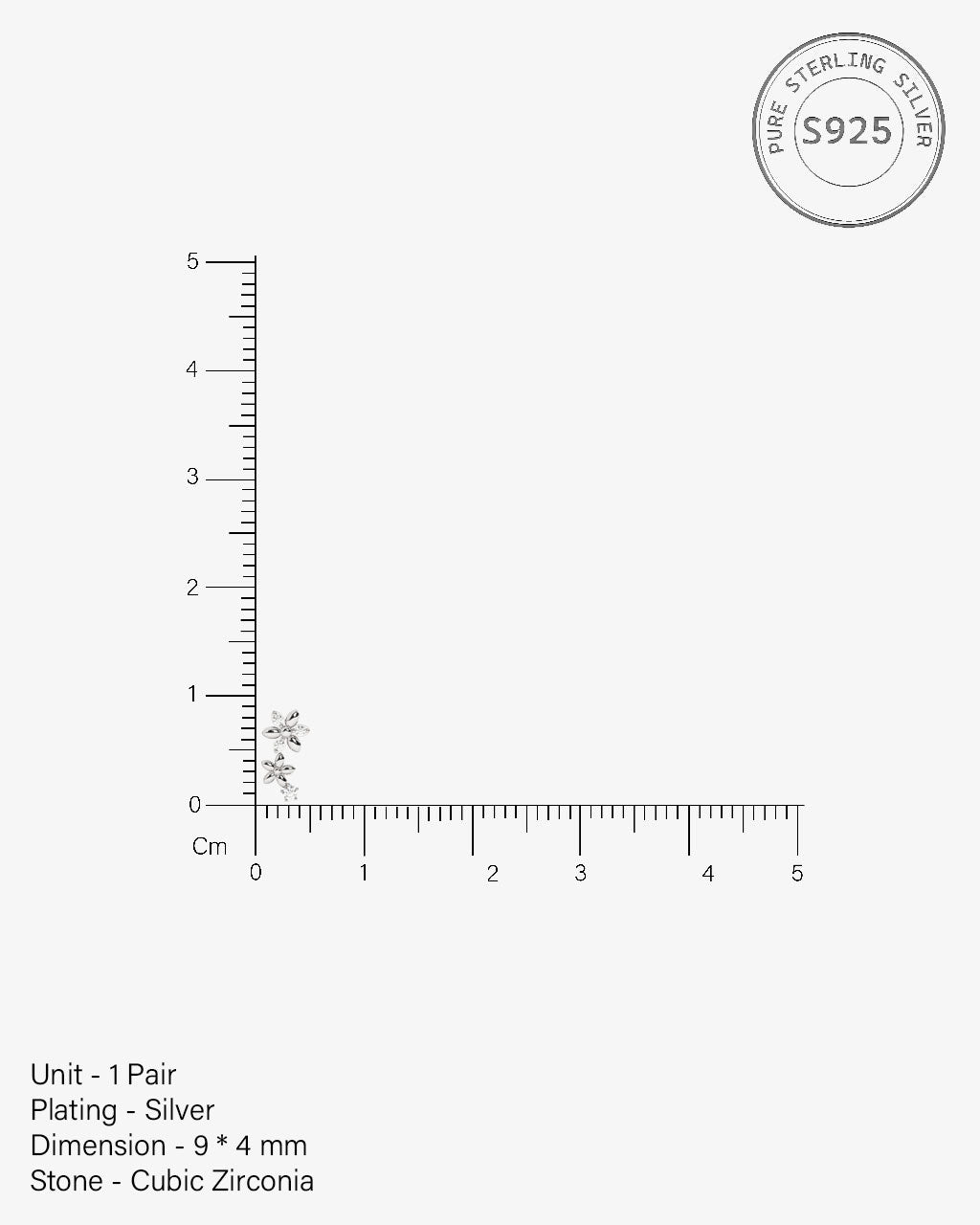 Floral elegance meets sparkle in Dainty Floral Curve Stud Earrings crafted in 92.5 silver with 5A+ zirconia stones and rhodium plating. A curved floral-inspired design adds timeless beauty to everyday or festive wear.
