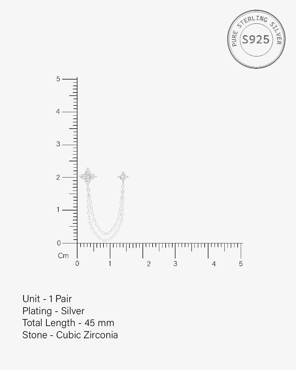 Lotus Petal Connector Chain Earrings in 92.5 sterling silver with 5A+ zirconia stones. Rhodium plated, featuring delicate lotus petal-inspired layers, perfect for modern style, daily wear, or gifting to loved ones.