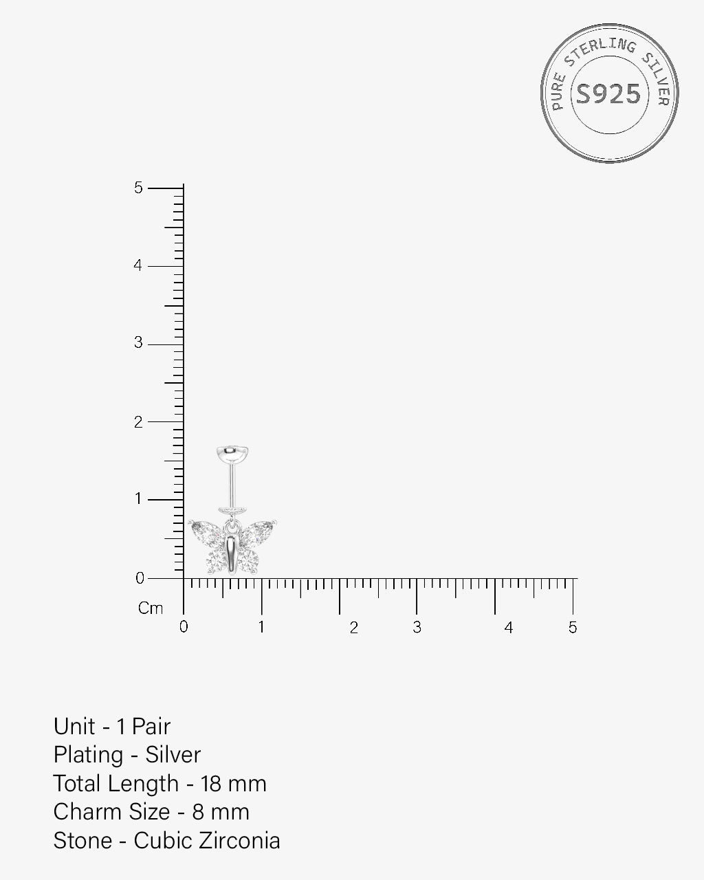 Four Marquise Butterfly Helix Hanging Earrings in 92.5 sterling silver with rhodium plating and 5A+ zirconia stones. The delicate marquise butterfly design adds charm, movement, and sparkle to helix piercings, ideal for layering, gifting, or adding a whimsical accent to your ear jewelry collection.