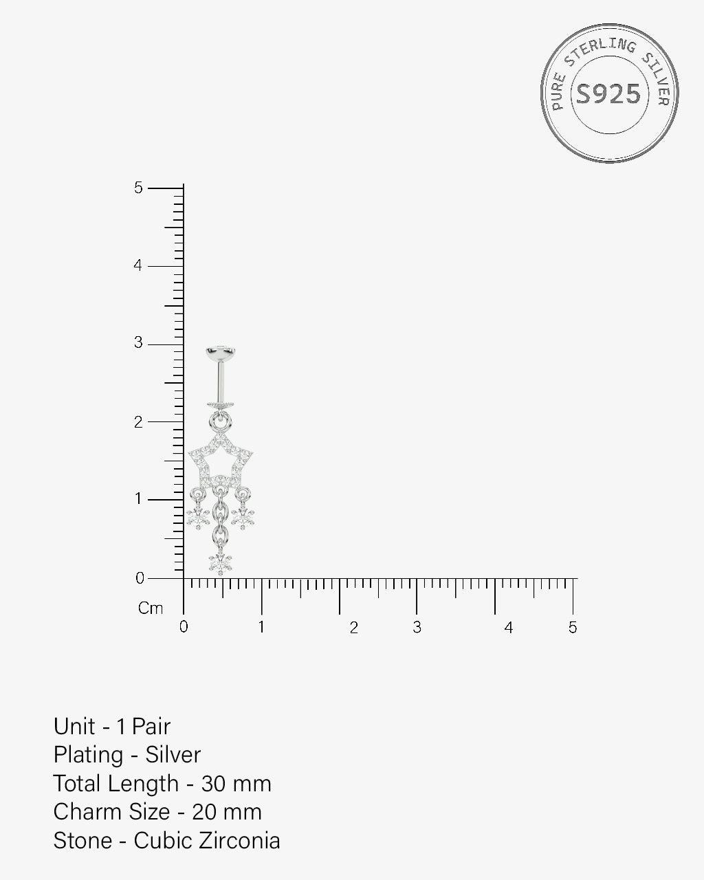 Multi Stone Drops Helix Hanging Earrings in 92.5 sterling silver with rhodium plating and 5A+ zirconia stones. Cascading multi-stone design adds layered sparkle, fluid movement, and sophisticated elegance to helix piercings, perfect for layering, gifting, or making a striking statement with ear jewelry.