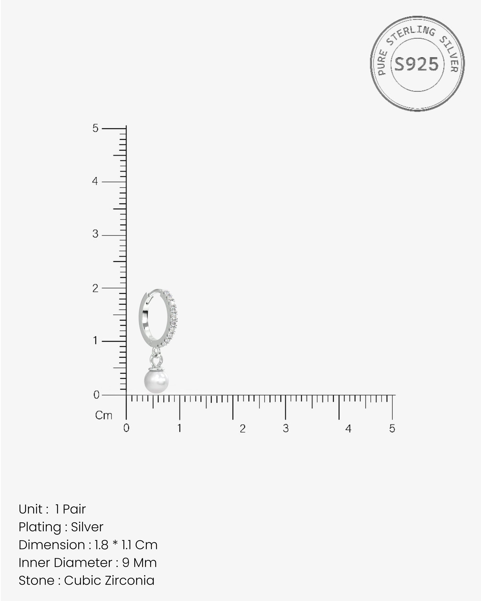 Elegant Mini Pearl Drop hoops in 92.5 silver, rhodium plated, adorned with 5A+ zirconia stones. The pearl drop adds classic charm and sparkle, perfect for layering, gifting, or enhancing both casual and evening outfits.
