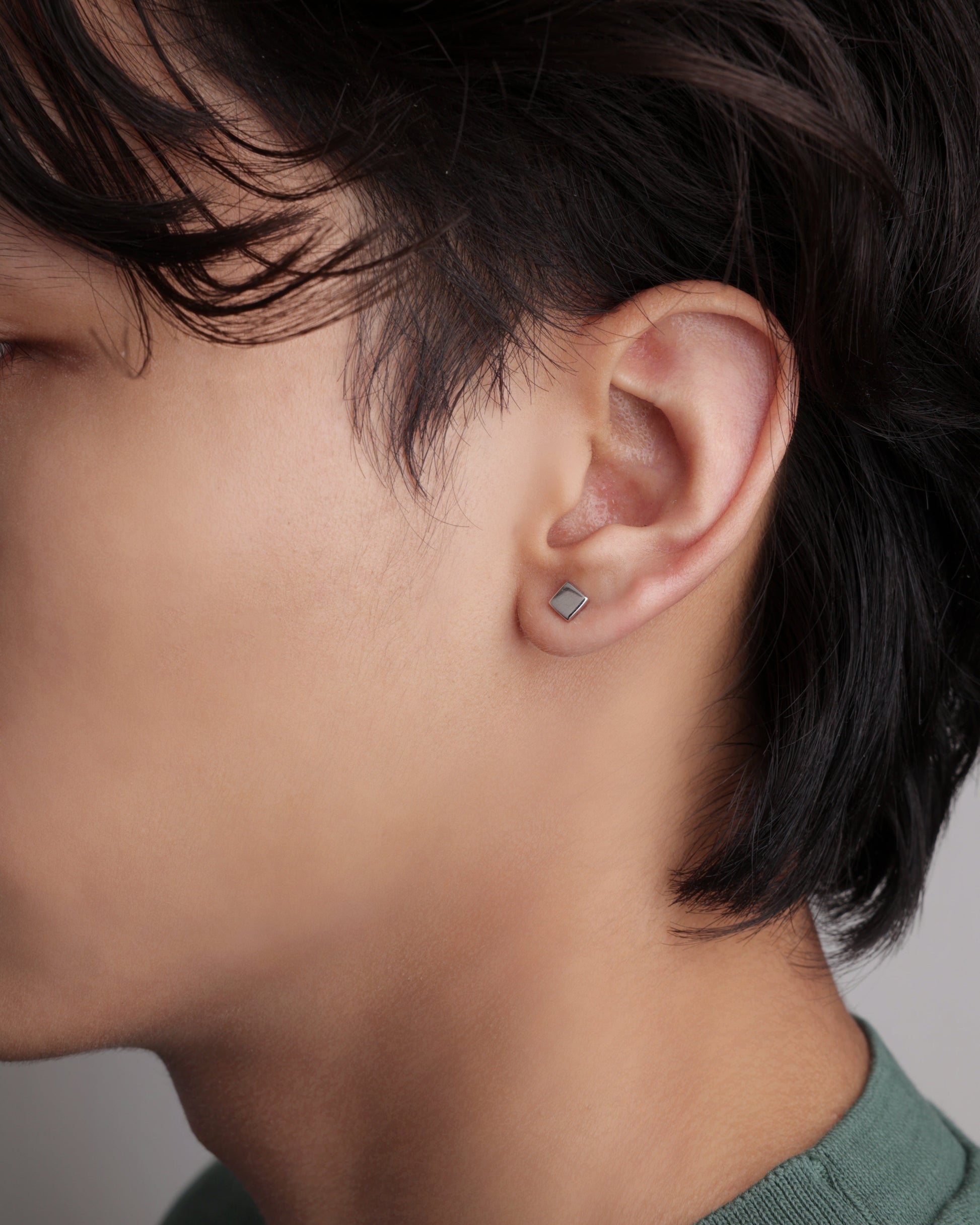 Silver Geometric Square Stud Men's Earrings in 92.5 sterling silver with 5A+ zirconia stones. Rhodium plated for brilliance, these modern geometric studs bring bold, stylish simplicity to everyday wear.