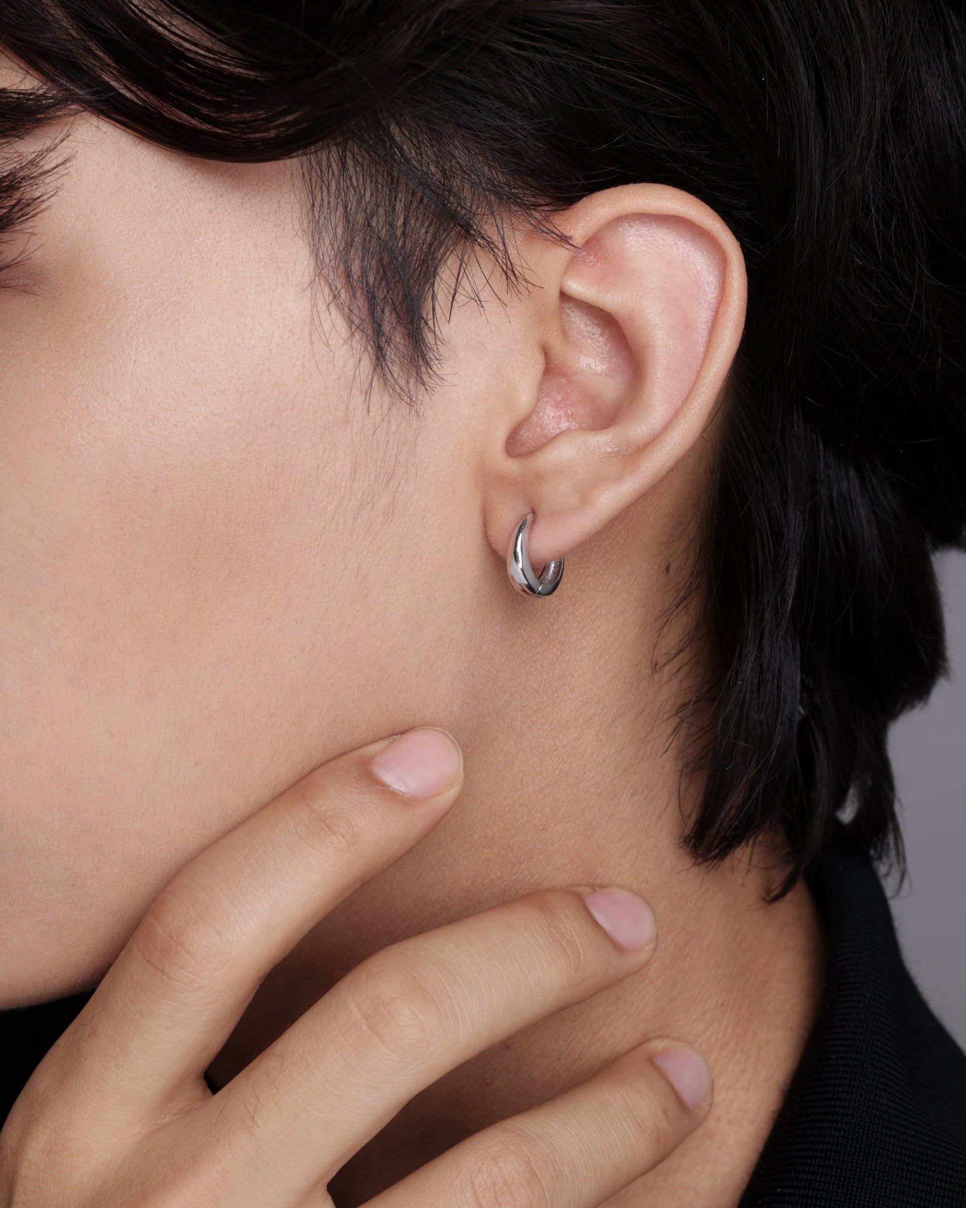 Silver Plain Kaju Bali Hoop Earrings For Men's