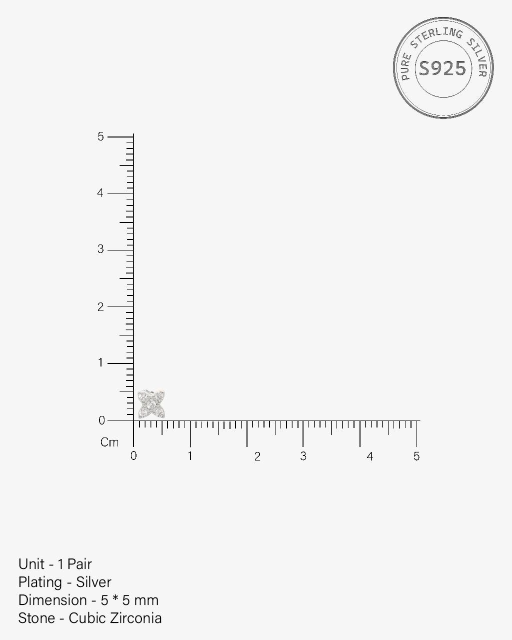 Quadra Bloom Flat Back Stud Earrings in 92.5 sterling silver with 5A+ zirconia stones, Rhodium plated. Four-petal bloom design adds feminine charm and sparkle, suitable for casual wear, office styling, or gifting a loved one.