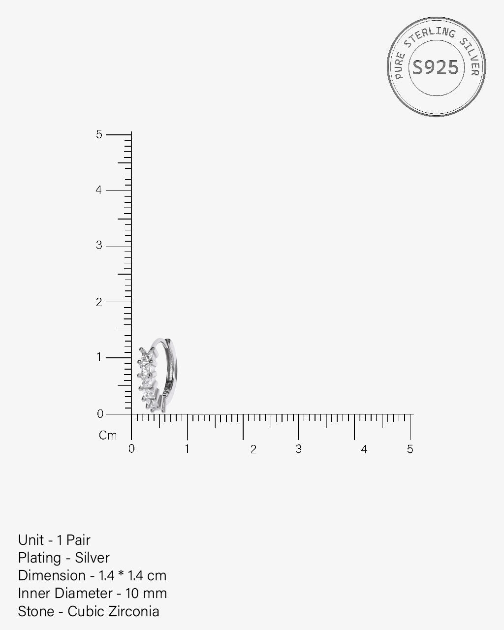 Elegant Regal Radiance hoops in 92.5 silver, rhodium plated with 5A+ zirconia stones. These statement hoops provide sophisticated shine and versatility, perfect for stacking, gifting, or wearing solo to turn heads.