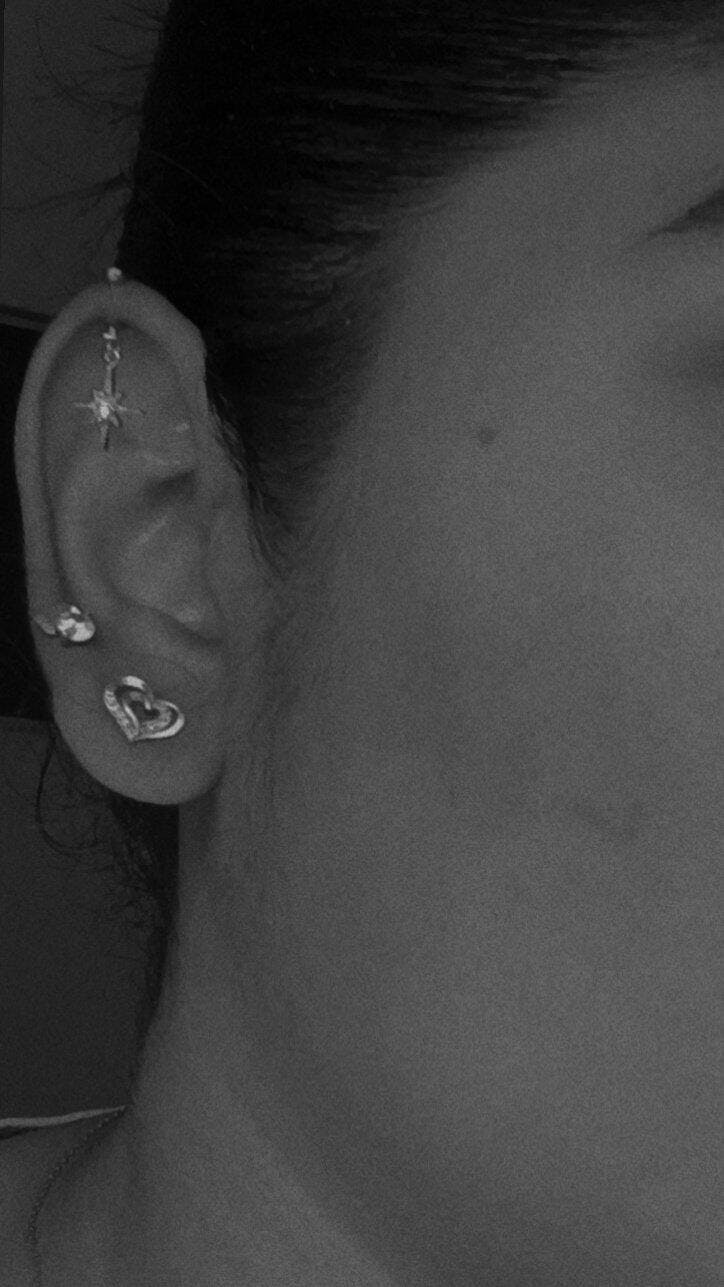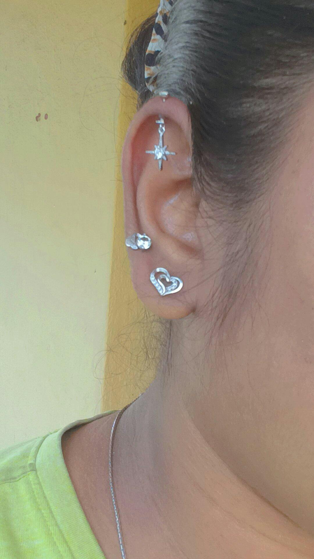 Zirconia Snow Burst Screw Helix Earrings in 92.5 sterling silver with rhodium plating and 5A+ zirconia stones. Snow burst motif adorned with sparkling zirconia offers luminous elegance, flowing movement, and radiant charm for helix piercings or layered ear styling.