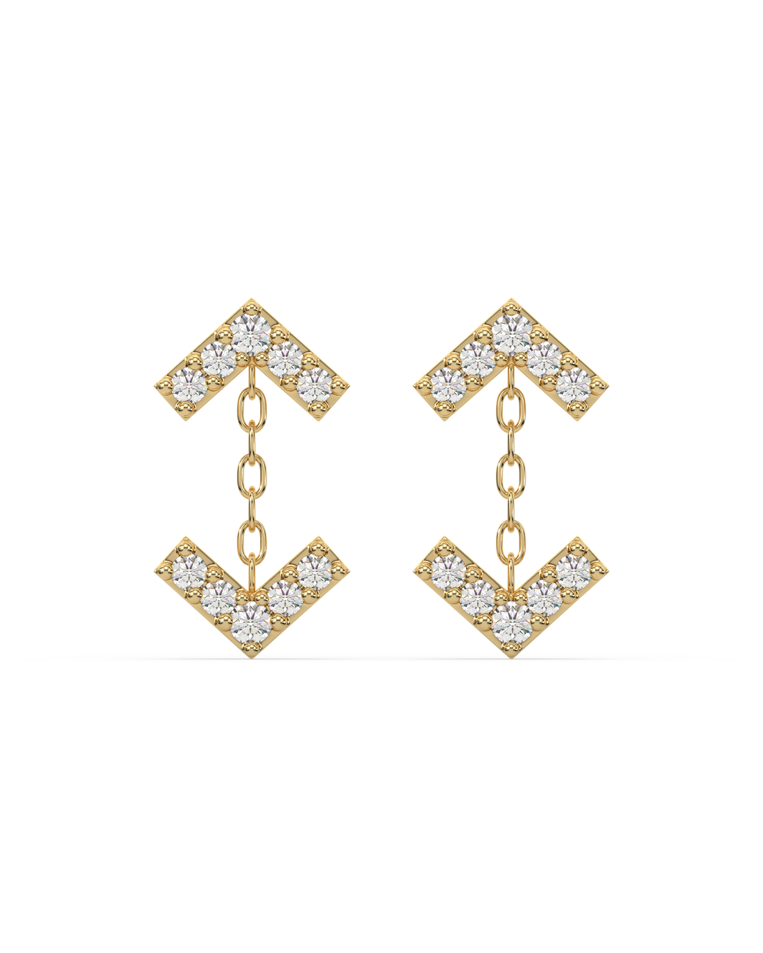 Venetia Chain Connector Earrings in 92.5 sterling silver with 5A+ zirconia stones, 14K gold plated....