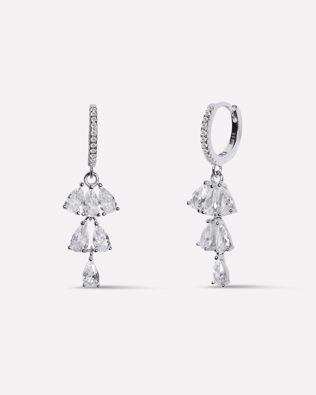 Delicate Droplet hoops in 92.5 silver, rhodium plated with sparkling 5A+ zirconia stones. The droplet...