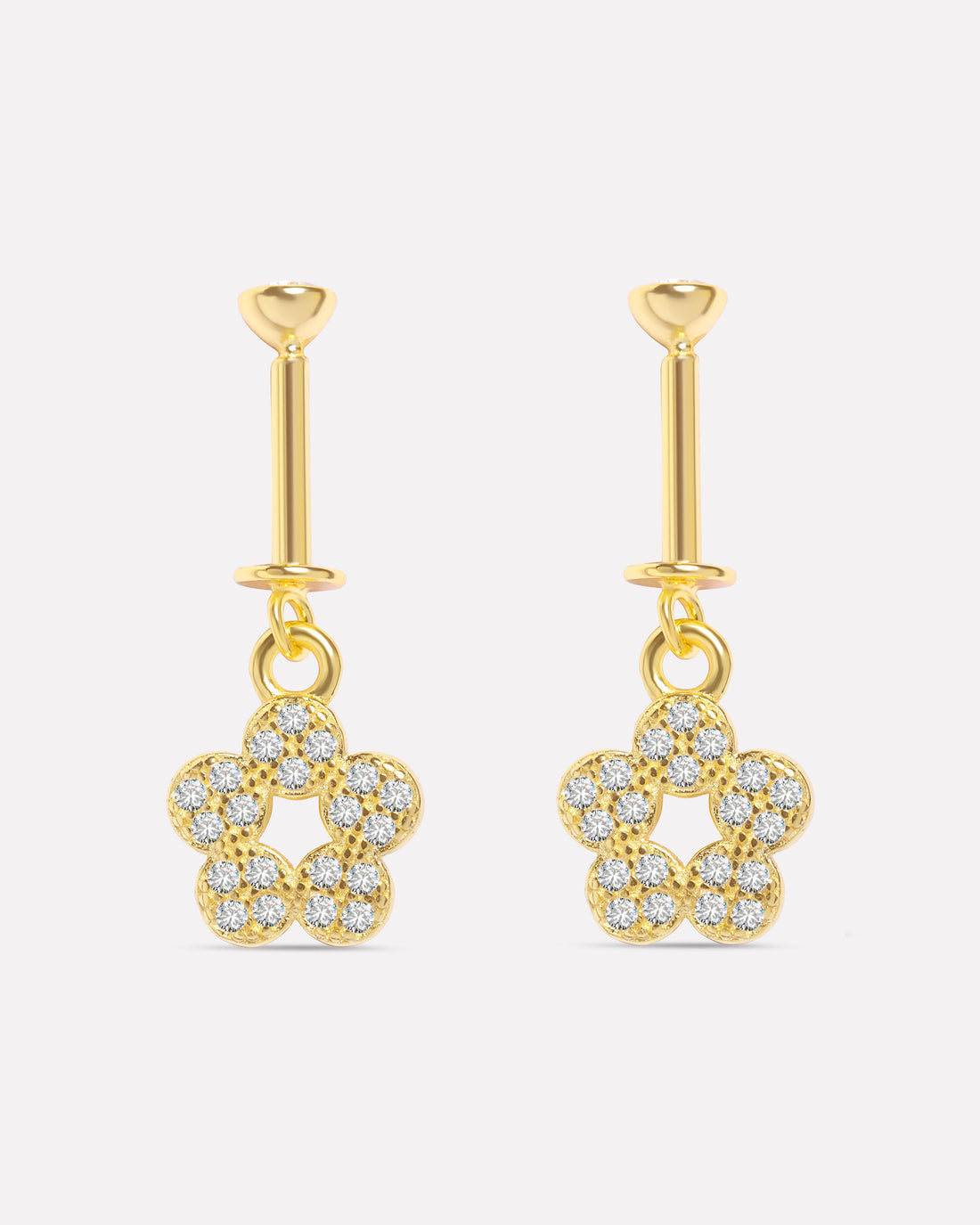 Blossom Floret Helix Hanging Earrings in 92.5 sterling silver with 5A+ zirconia stones, 14K gold...