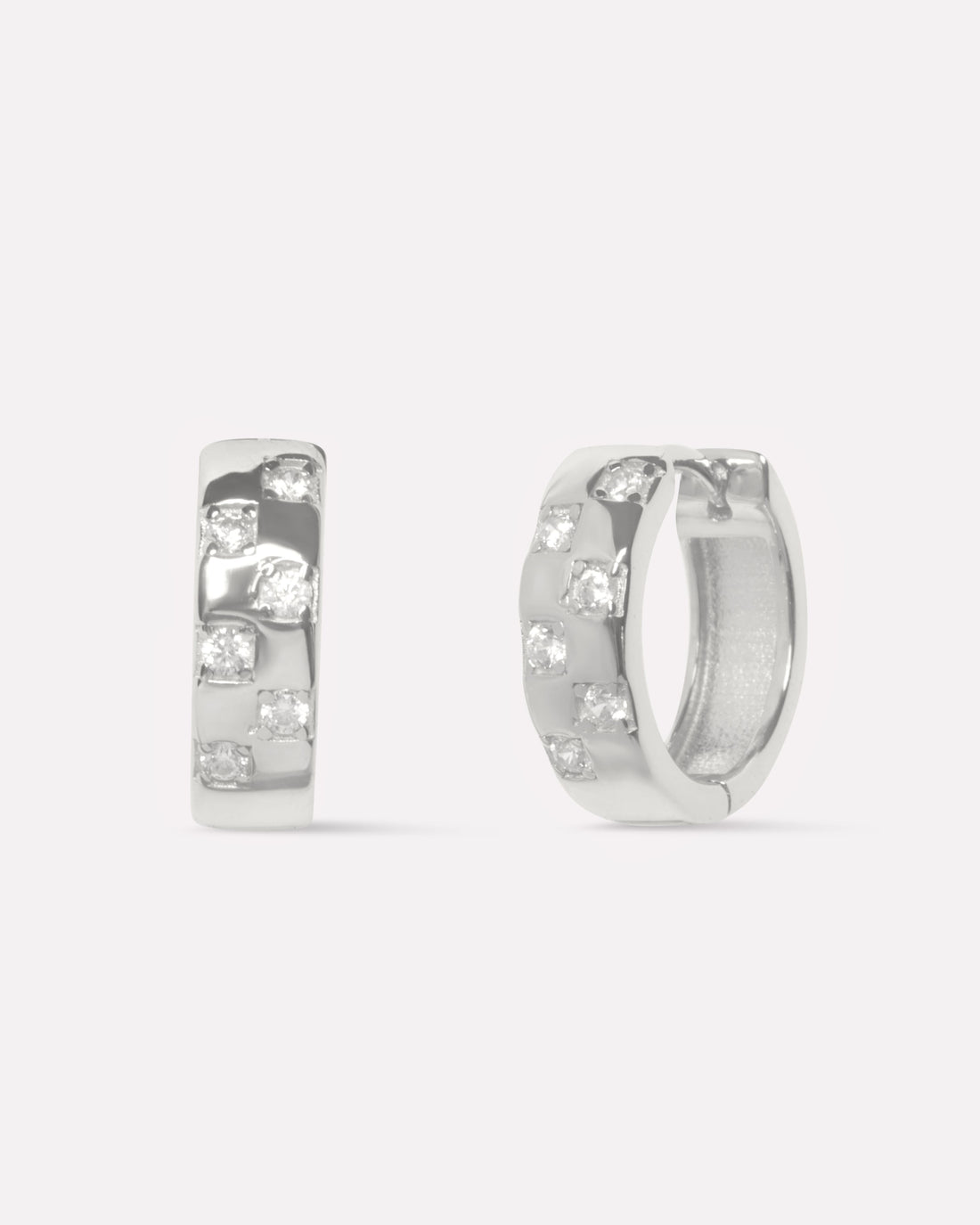 Geometric-inspired Starlit Checkmate hoops in 92.5 silver, rhodium plated with 5A+ zirconia stones. The unique...
