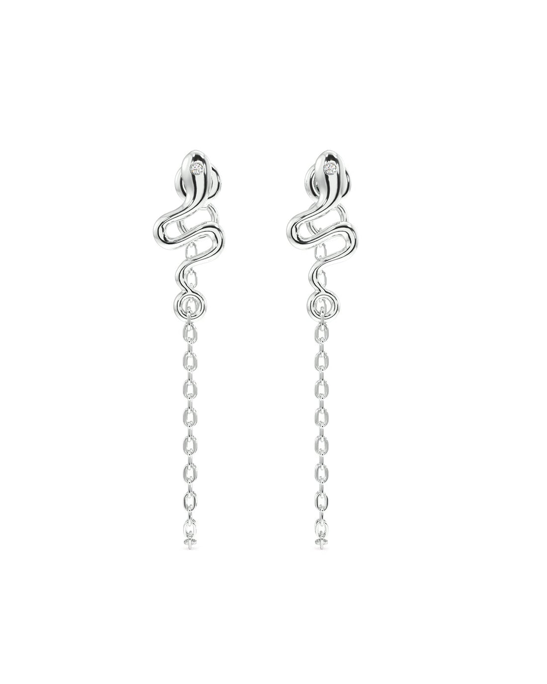 Snake Dangler Chain Earrings in 92.5 sterling silver with 5A+ zirconia stones. Rhodium plated, featuring...
