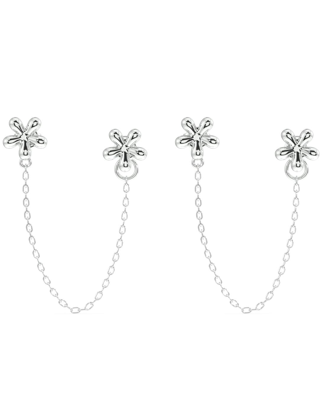 Dainty Flower Connector 3 In 1 Chain Earrings