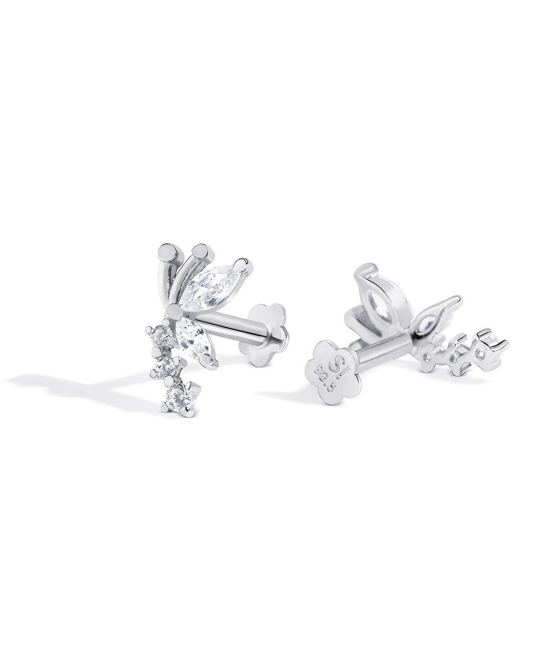Butterfly Wing Climber Flat Back Stud Earrings in 92.5 sterling silver with 5A+ zirconia stones,...