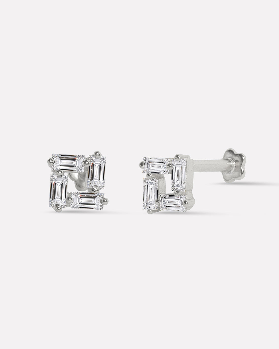Sparkle Matrix Flat Back Stud Earrings in 92.5 sterling silver with 5A+ zirconia stones. Rhodium...