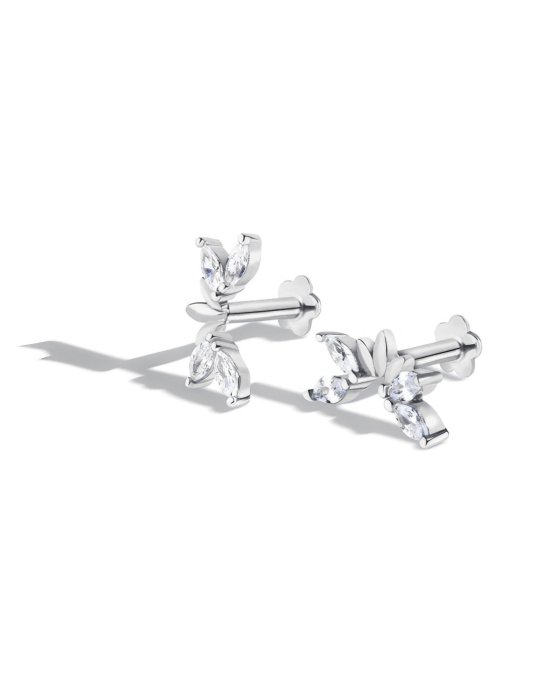 Zirconia Leaflet Climber Flat Back Screw Stud Earrings