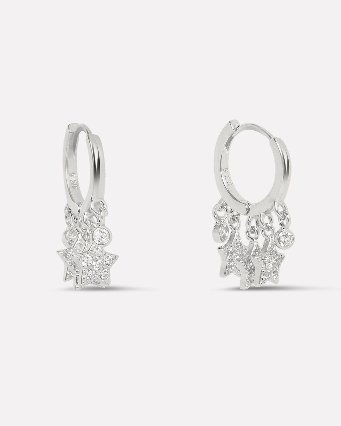 Playful Multi Star Charm hoops in 92.5 silver, rhodium plated with 5A+ zirconia stones. The...