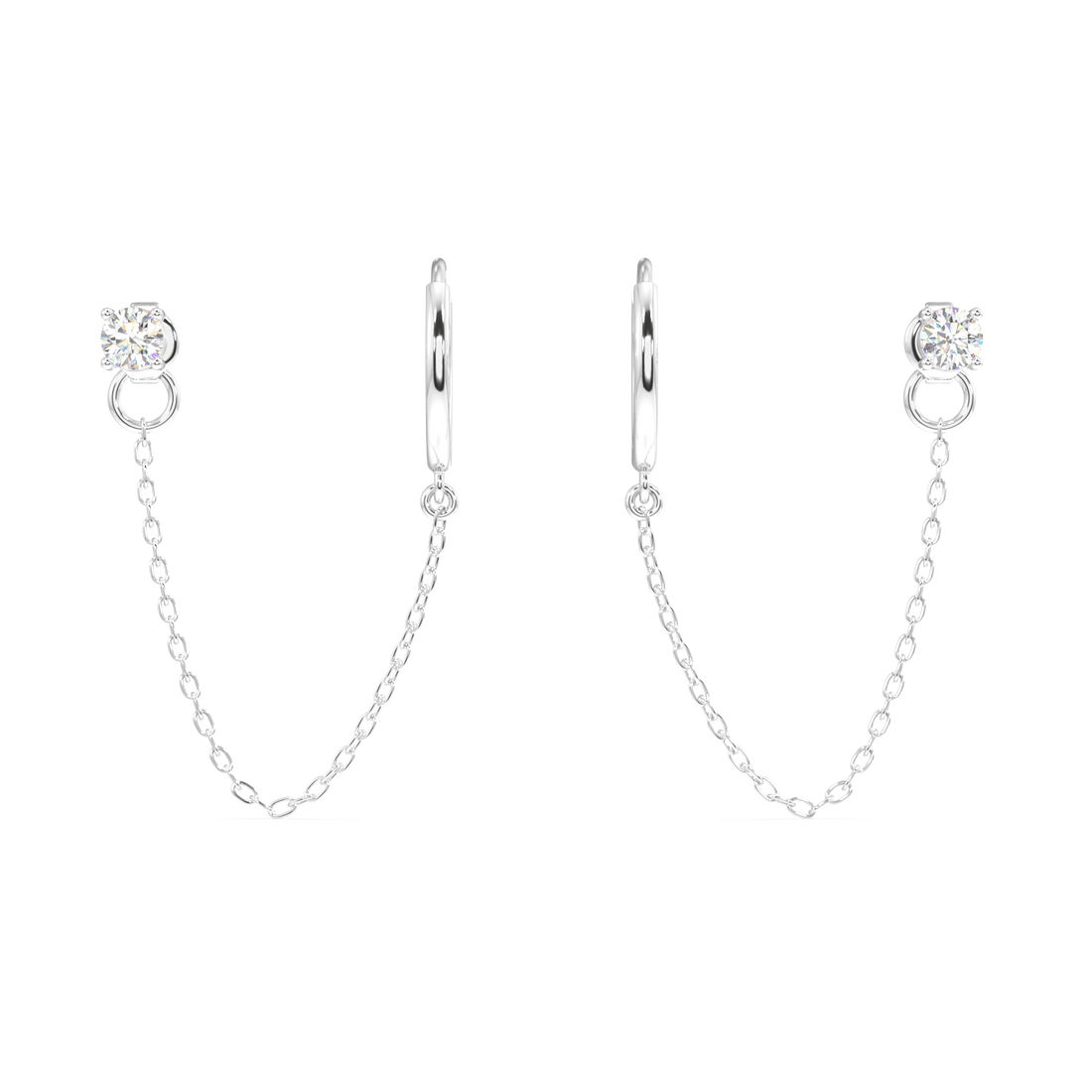Stylish Claw Hoop Connector Chain earrings in 92.5 silver, rhodium plated with sparkling 5A+ zirconia...