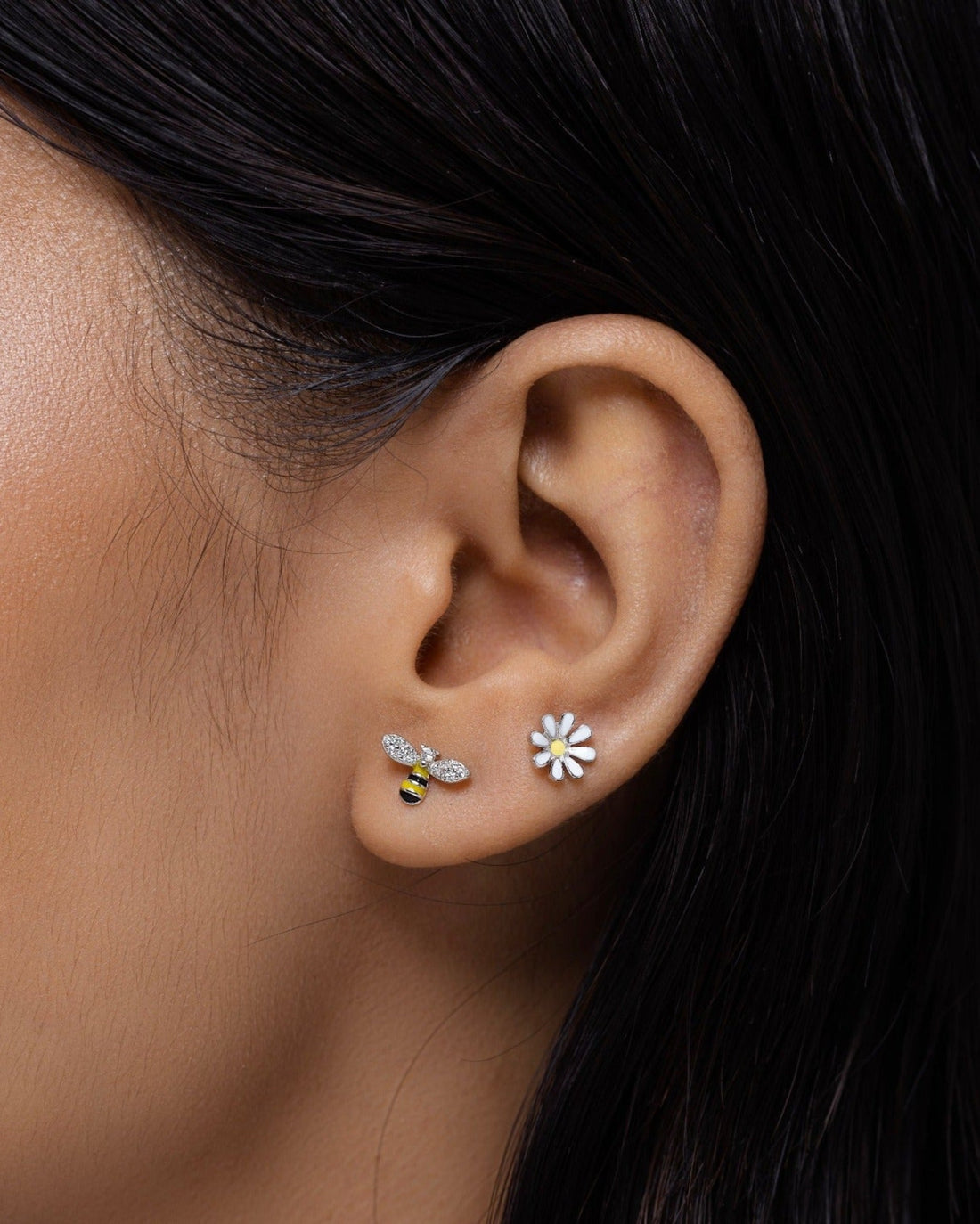 Mismatched Bee And Flower Stud Earrings