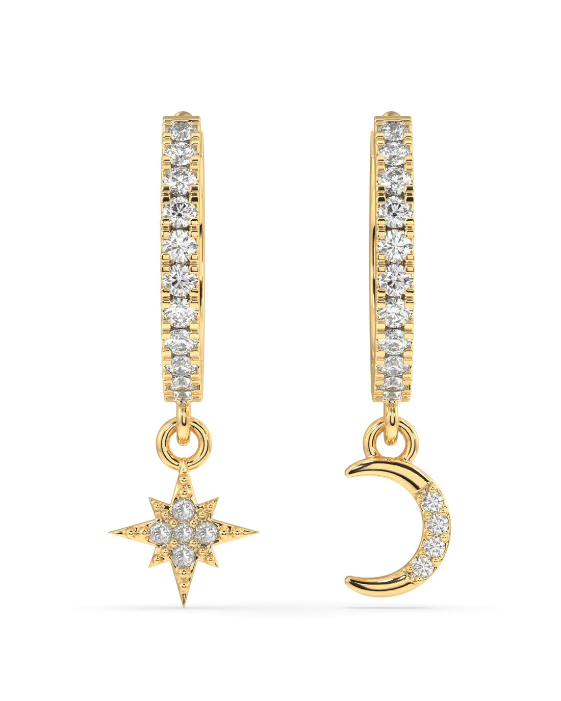 Elegant Moon Star Charm hoops in 92.5 silver with 14K gold plating, adorned with 5A+...