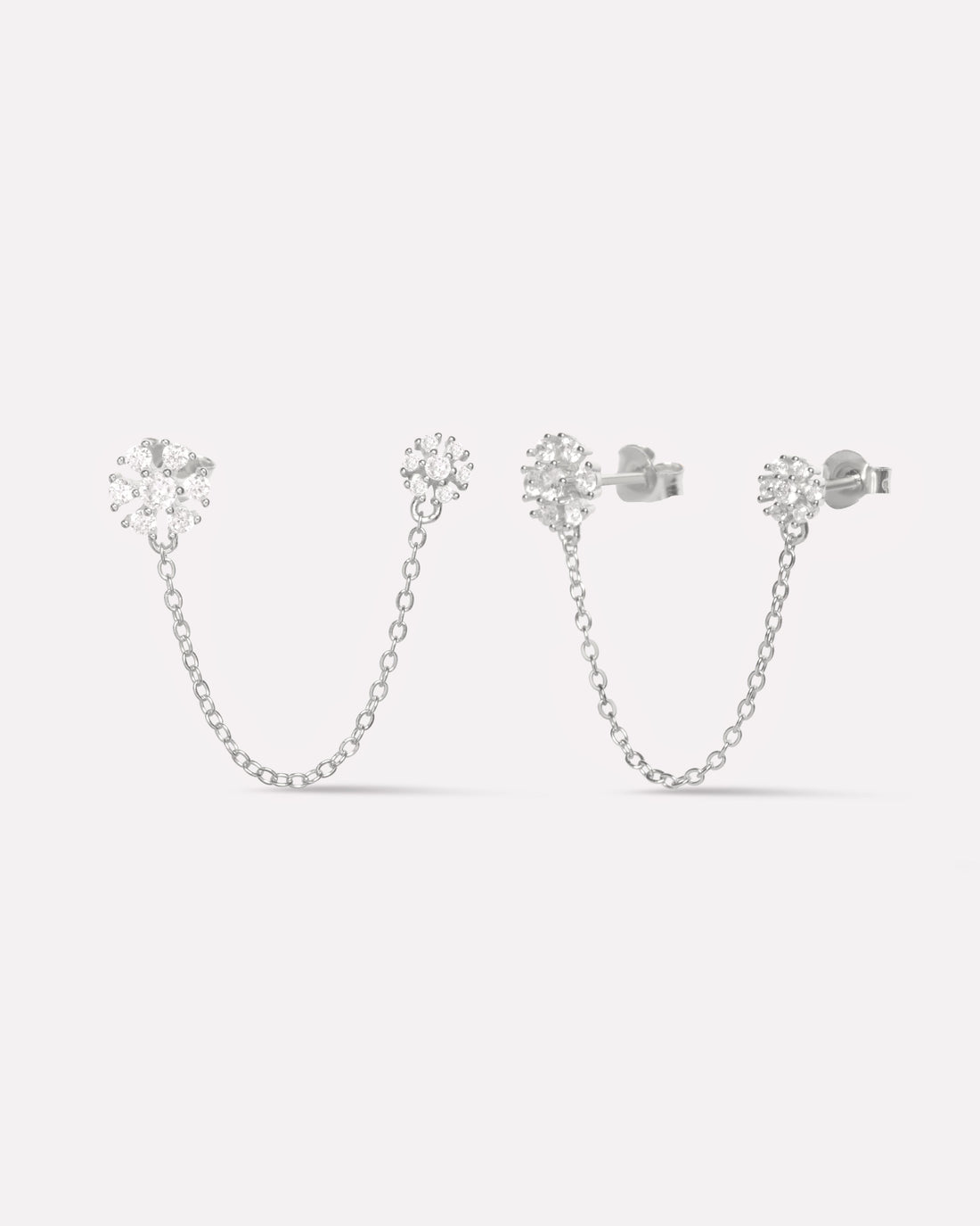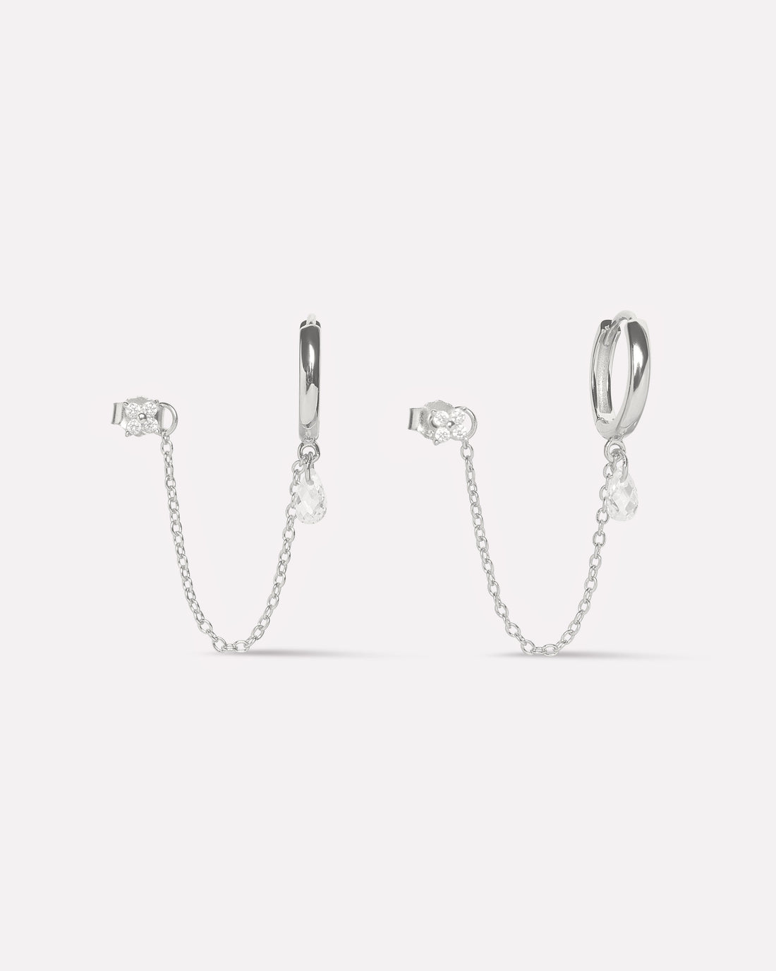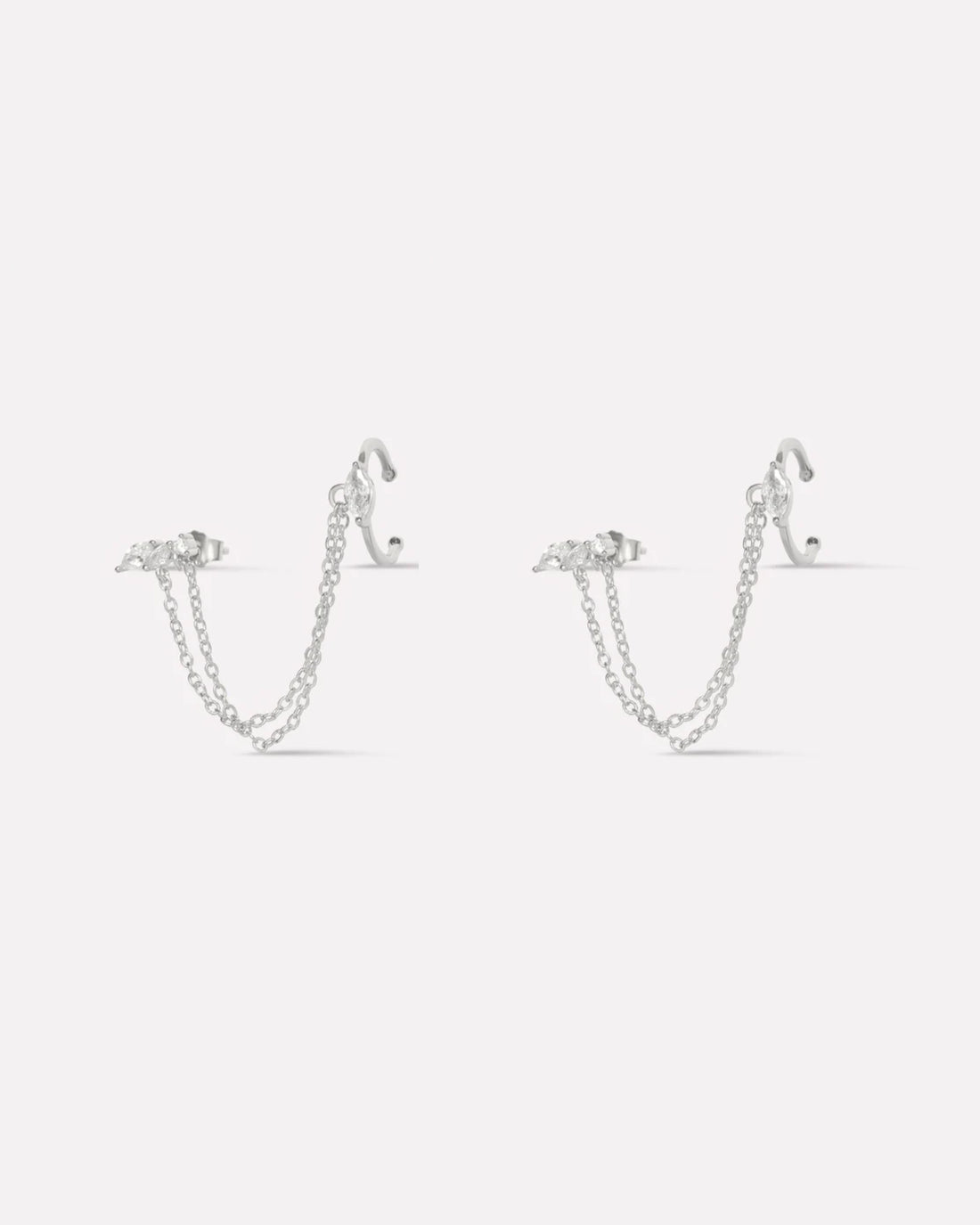 Noelle Chain Connector Earrings in 92.5 sterling silver with 5A+ zirconia stones. Rhodium plated for...
