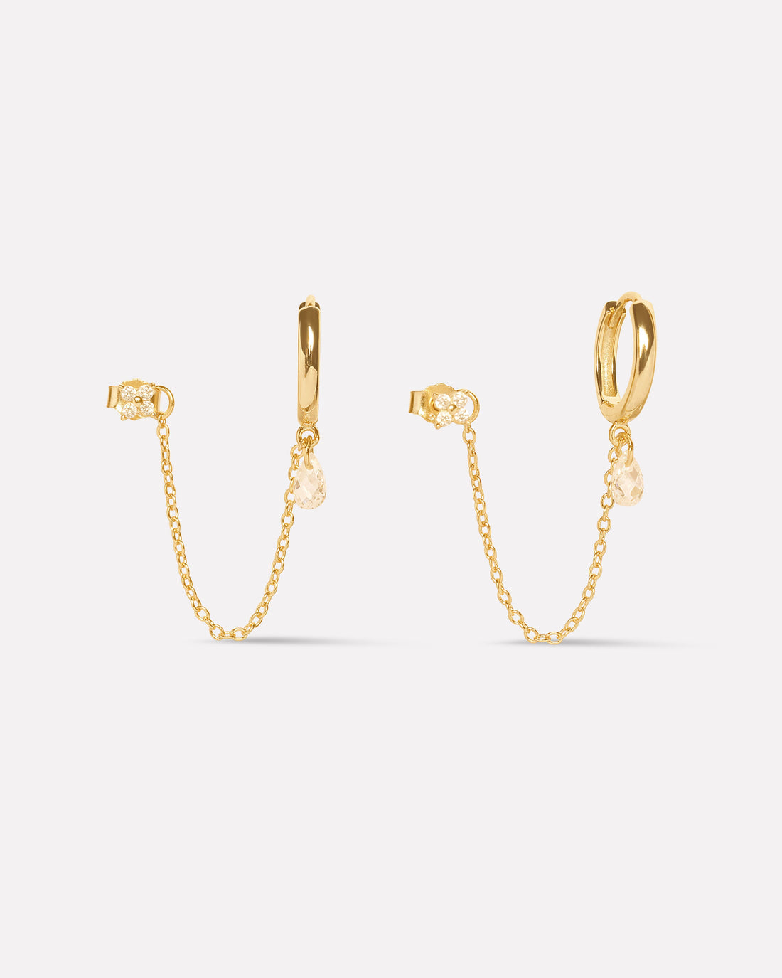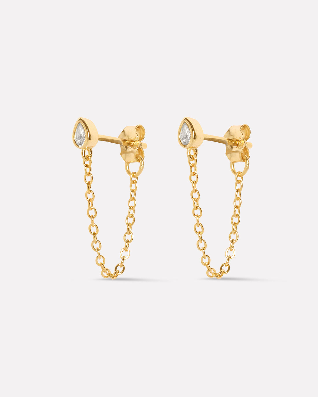 Estelle Chain Connector Earrings in 92.5 sterling silver with 5A+ zirconia stones, 14K gold plated...