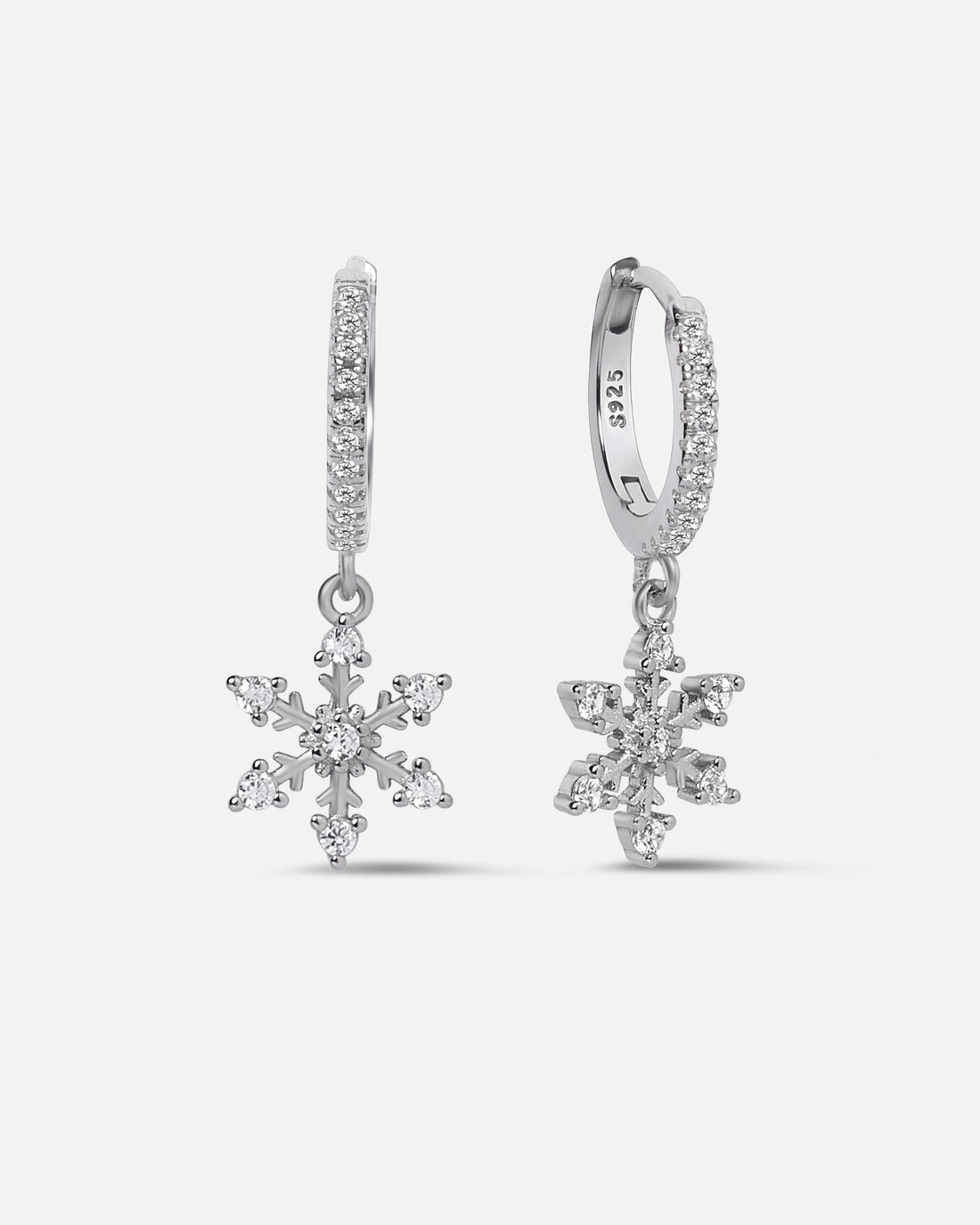 Chic Minimal Snowflake Charm hoops in 92.5 silver, rhodium plated with 5A+ zirconia stones. The...