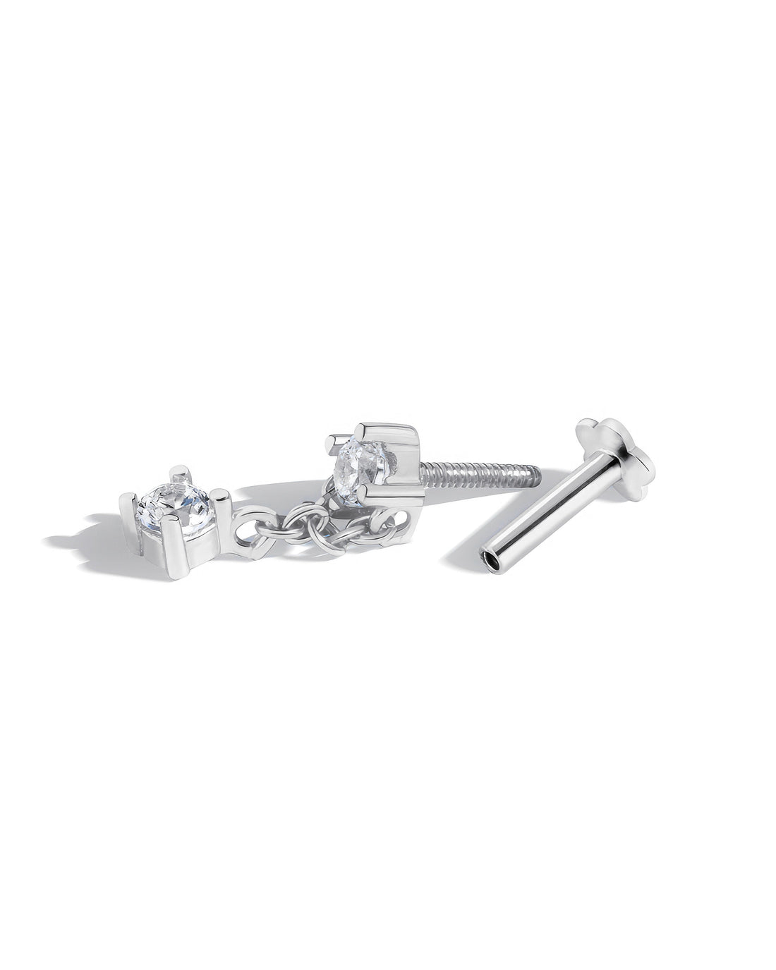Zirconia Duo Chain Drop Flat Back Stud Earrings in 92.5 sterling silver with 5A+ zirconia...