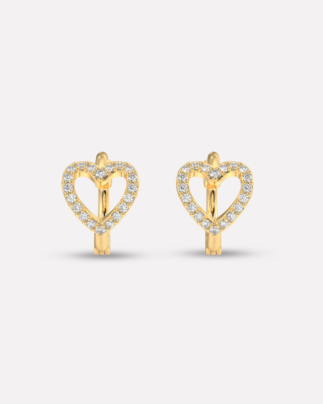 Romantic Stone Paved Heart Huggee hoops in 92.5 silver with 14K gold plating, adorned with...