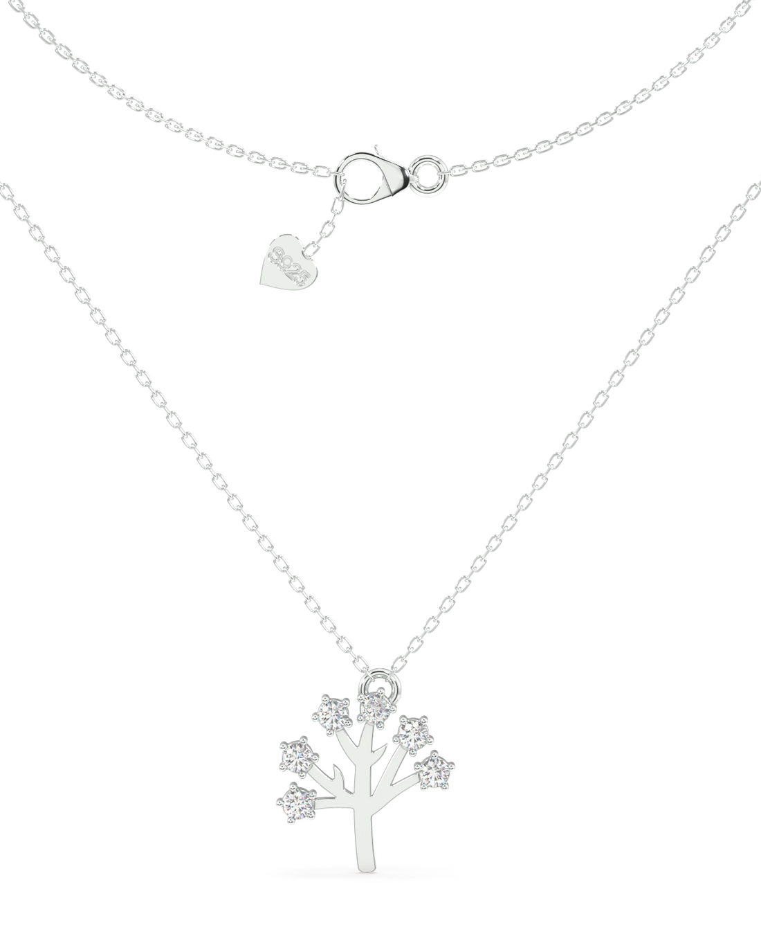 Tree of Life Charm Necklace in 92.5 sterling silver with 5A+ zirconia stones. Rhodium plated...