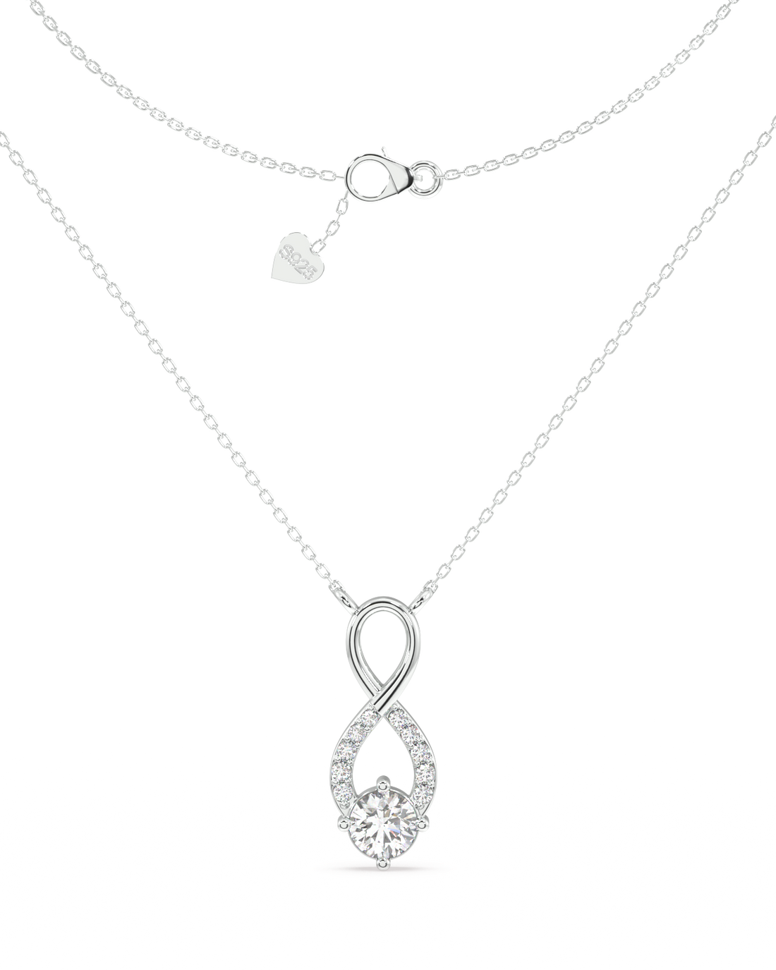 Infinite Forever Love Necklace in 92.5 sterling silver with 5A+ zirconia stones. Rhodium plated for...